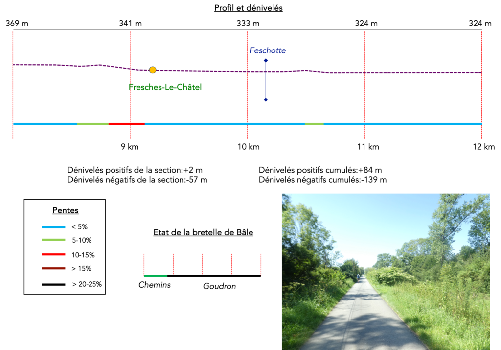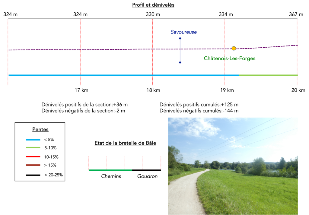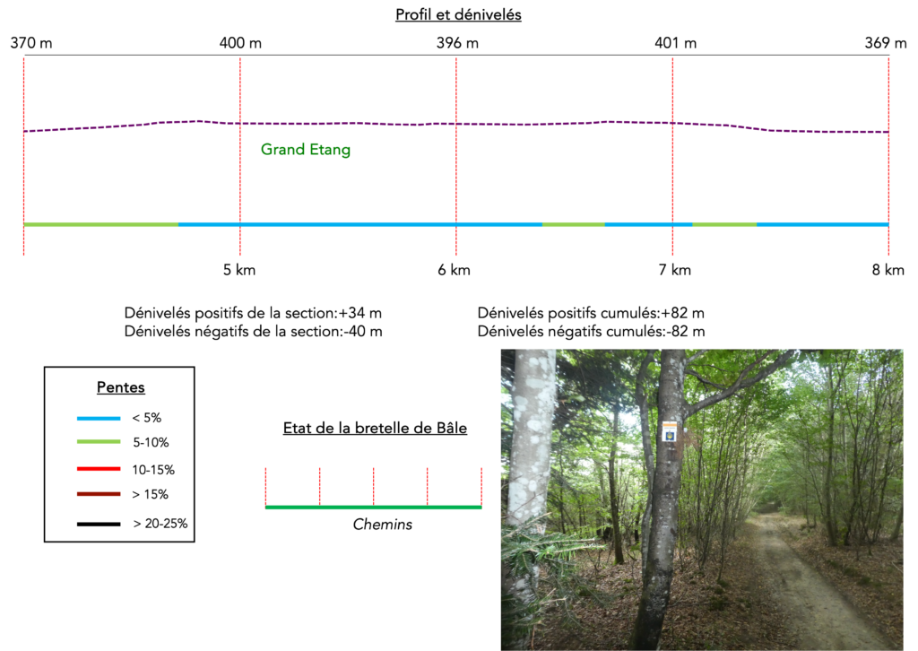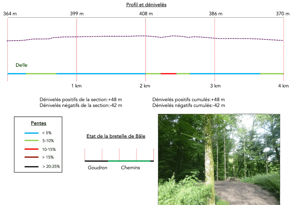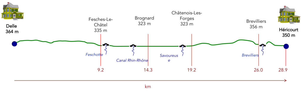 Aperçu général des difficultés du parcours : il n’y a guère que le passage dans la forêt après Breviliers qui soit un peu plus sévère.