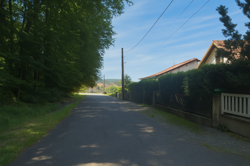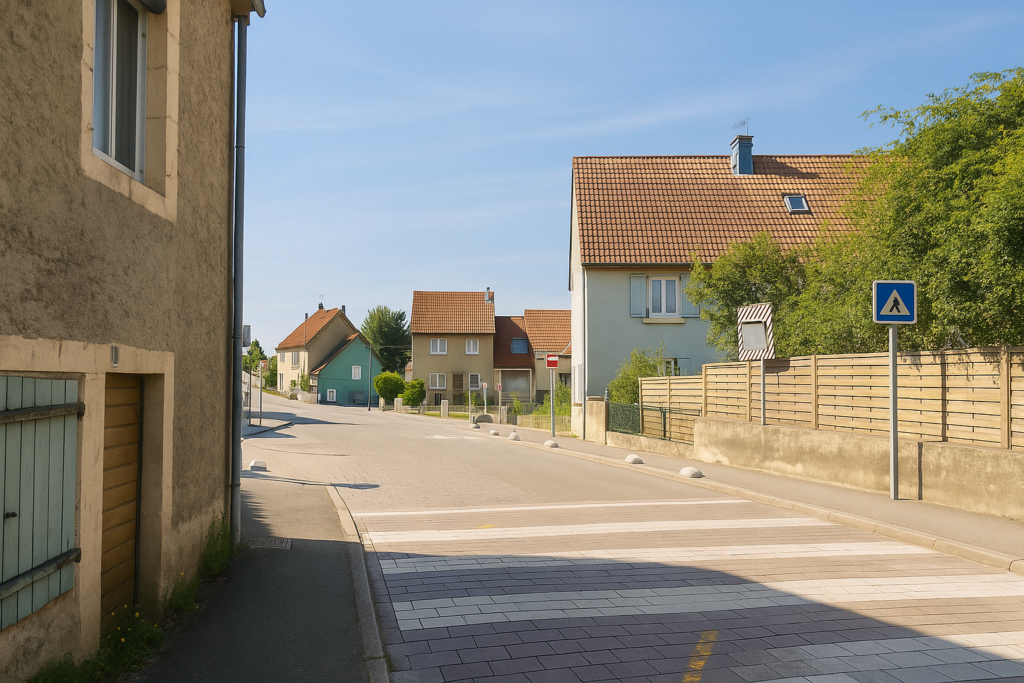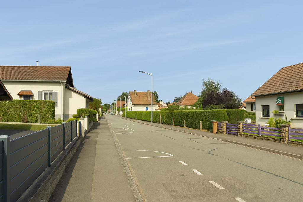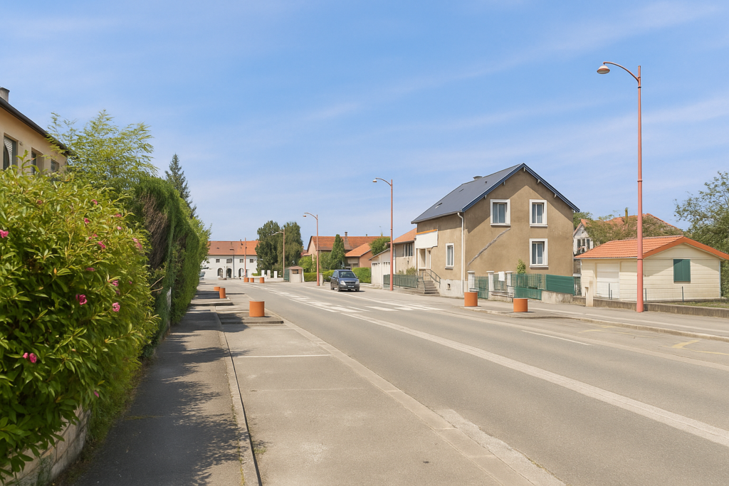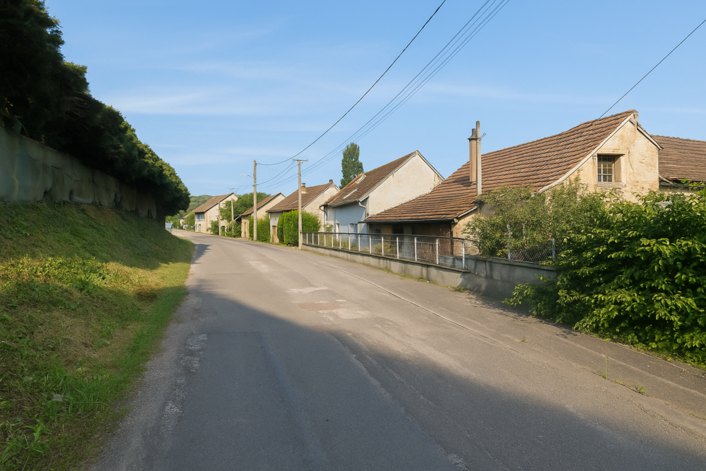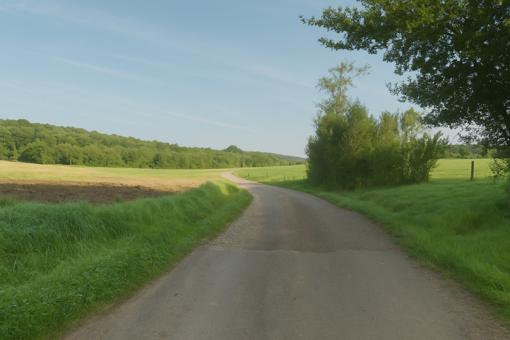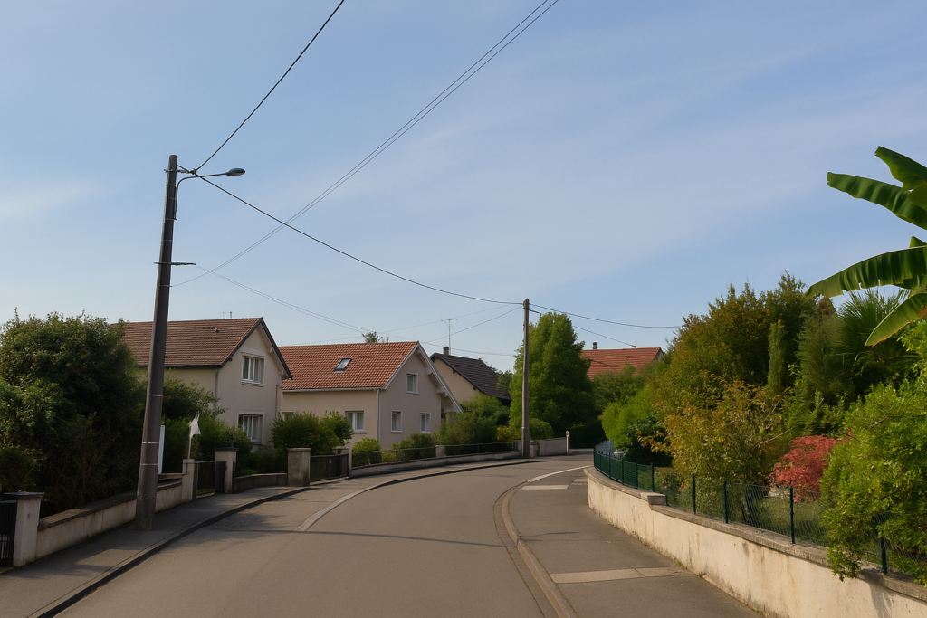 Le parcours quitte ici le chemin de terre, à angle droit, comme une décision brusque mais ferme, pour sortir enfin de la forêt. Et lorsque vous apercevrez, au bout de l’allée, la première maison surgir doucement entre les feuillages, il y a fort à parier que vous pousserez, vous aussi, un grand soupir. Il marque la fin du bois, mais aussi la victoire discrète du marcheur sur la confusion, la boue et la crainte de s’égarer. Une route prend alors le relais, modeste mais claire, et file sur les hauteurs du bourg de Fesches-le-Châtel. On quitte la forêt sans regret, mais non sans un dernier regard en arrière. Le paysage s’ouvre, les repères redeviennent lisibles. Le monde revient. |