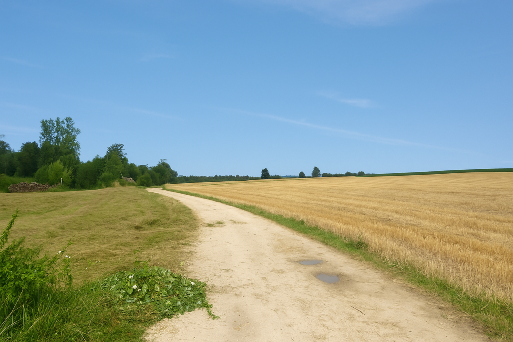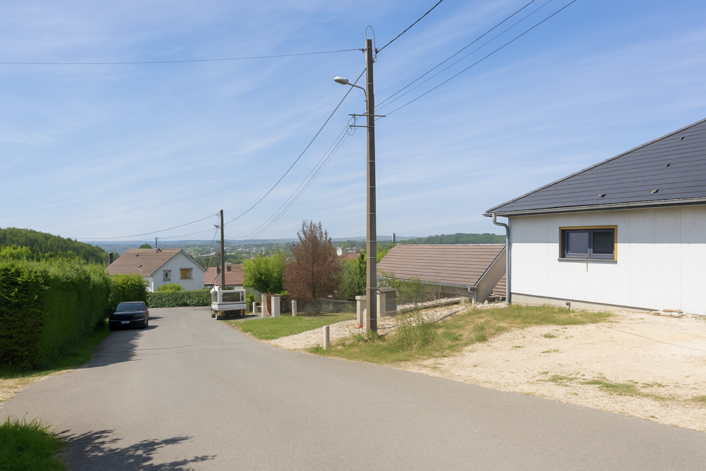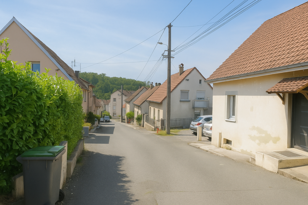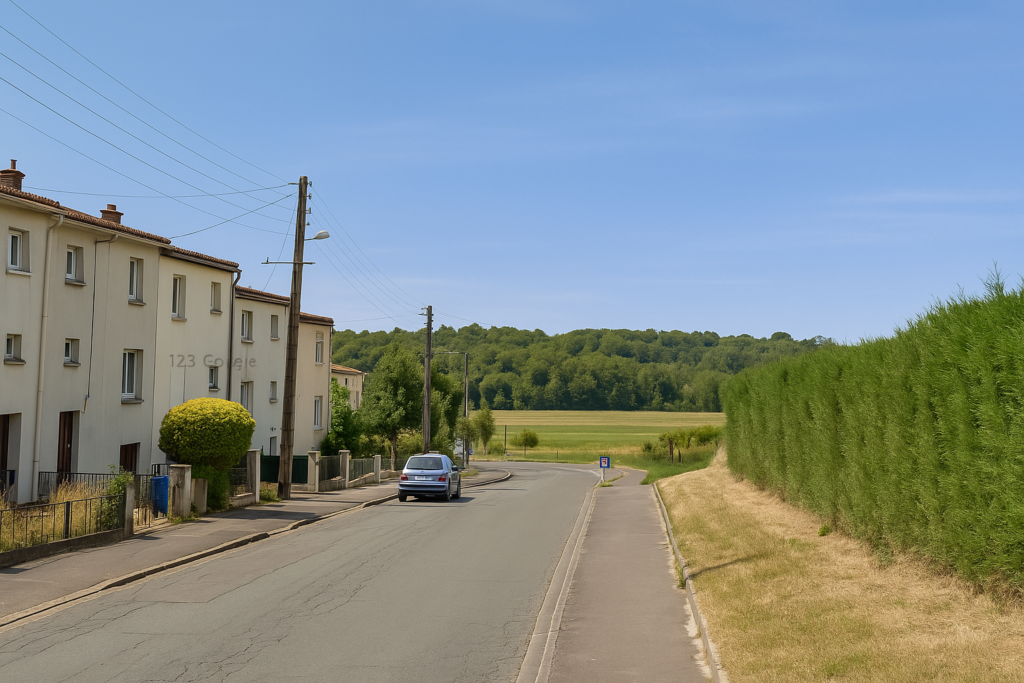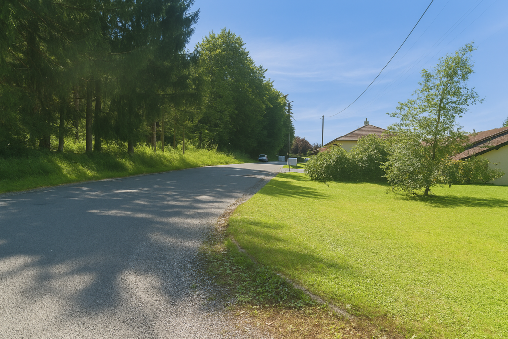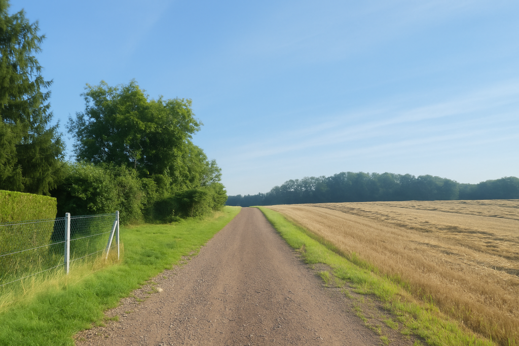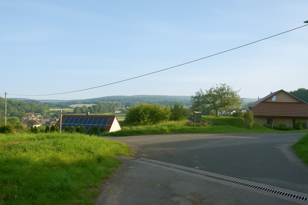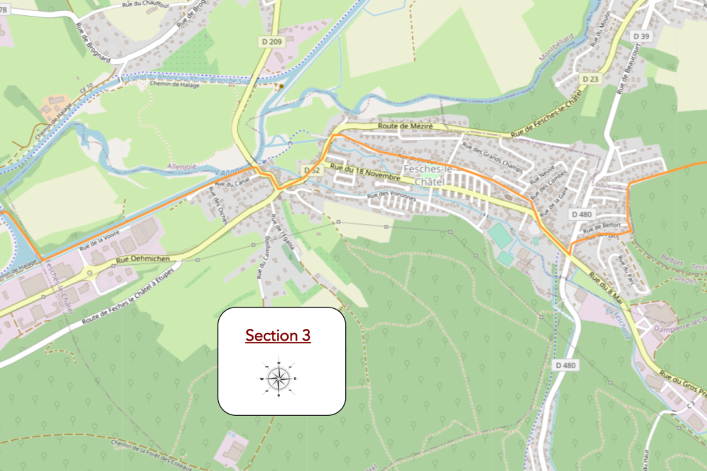 Le parcours quitte ici le chemin de terre, à angle droit, comme une décision brusque mais ferme, pour sortir enfin de la forêt. Et lorsque vous apercevrez, au bout de l’allée, la première maison surgir doucement entre les feuillages, il y a fort à parier que vous pousserez, vous aussi, un grand soupir. Il marque la fin du bois, mais aussi la victoire discrète du marcheur sur la confusion, la boue et la crainte de s’égarer. Une route prend alors le relais, modeste mais claire, et file sur les hauteurs du bourg de Fesches-le-Châtel. On quitte la forêt sans regret, mais non sans un dernier regard en arrière. Le paysage s’ouvre, les repères redeviennent lisibles. Le monde revient. |