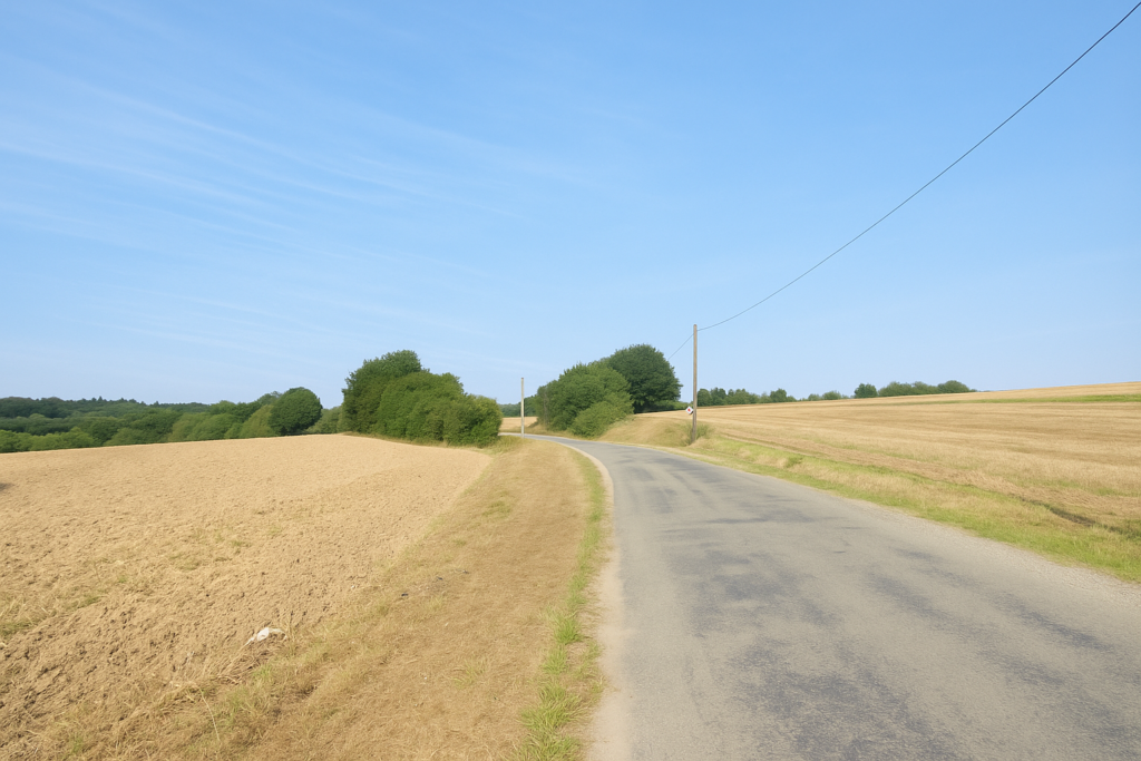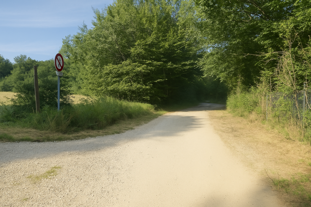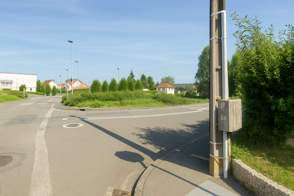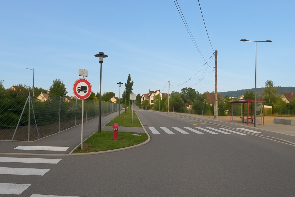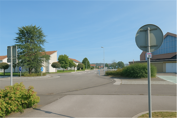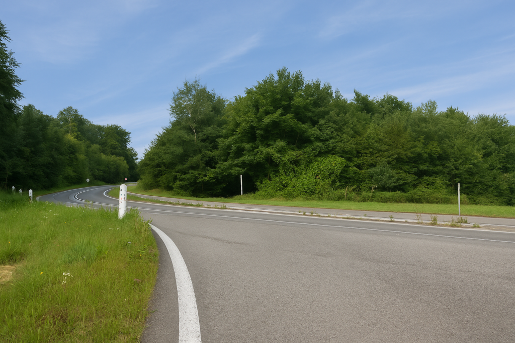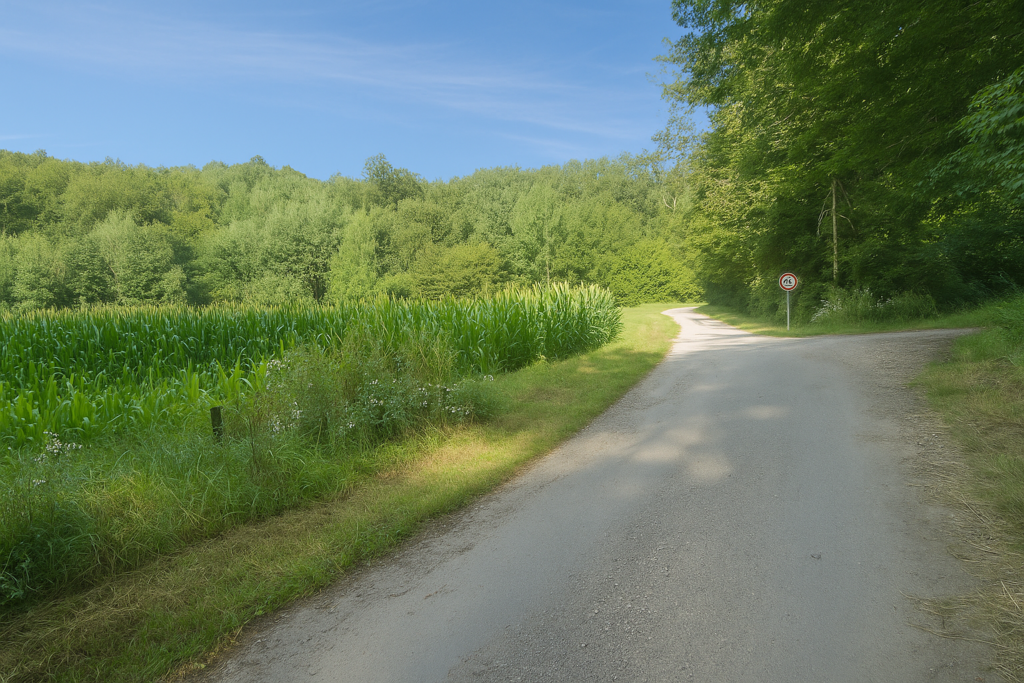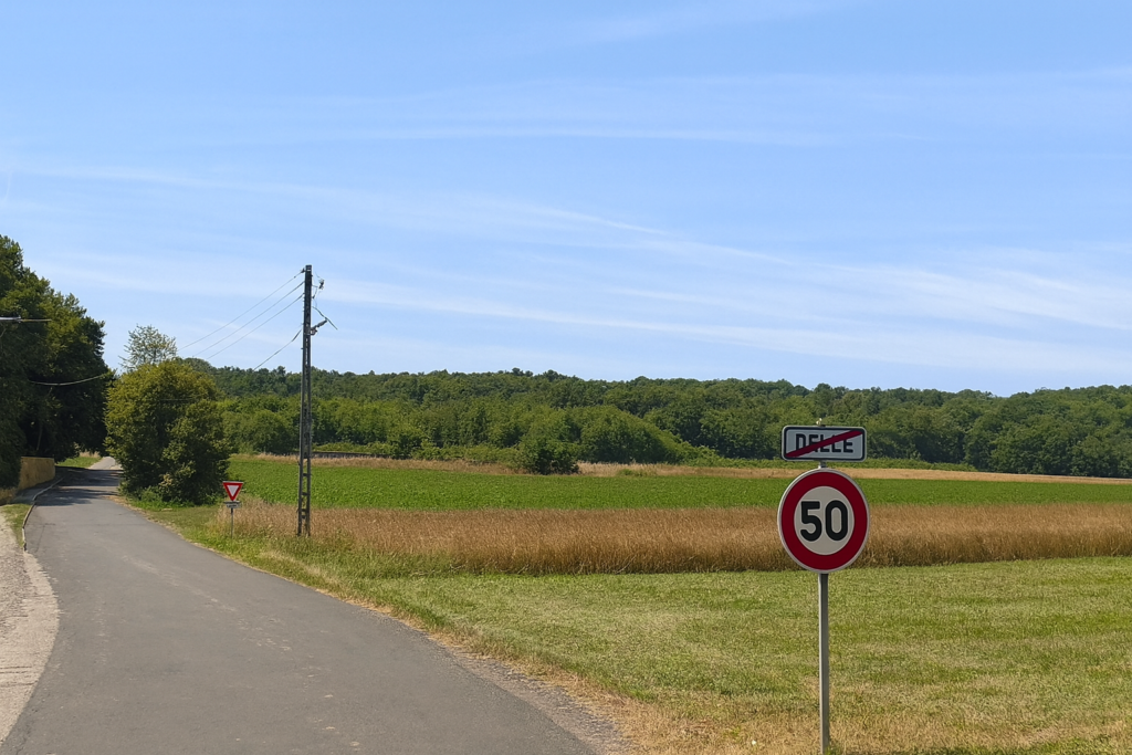 Très vite, le parcours croise une autre route, plus large, qui contourne Delle comme une ceinture. Elle enveloppe la ville, mais ne l’étreint plus. Ce contournement, sans charme particulier, marque pourtant un seuil net. C’est ici, dans cette apparente banalité, que l’on quitte définitivement l’espace urbain. Le souffle s’élargit. |