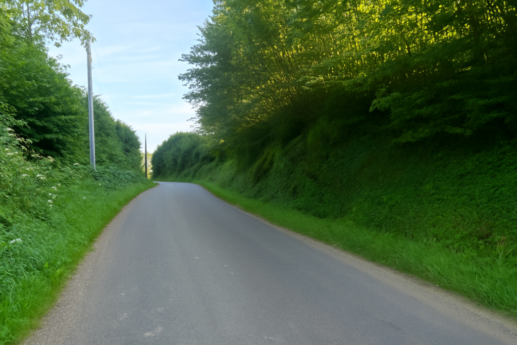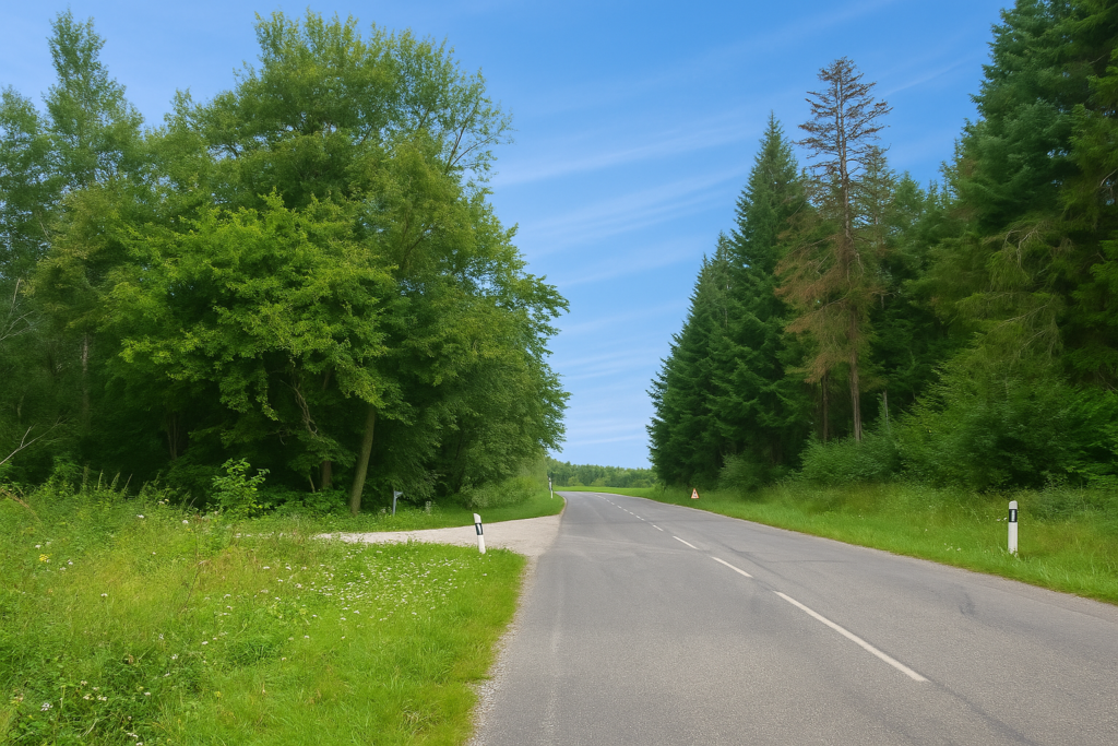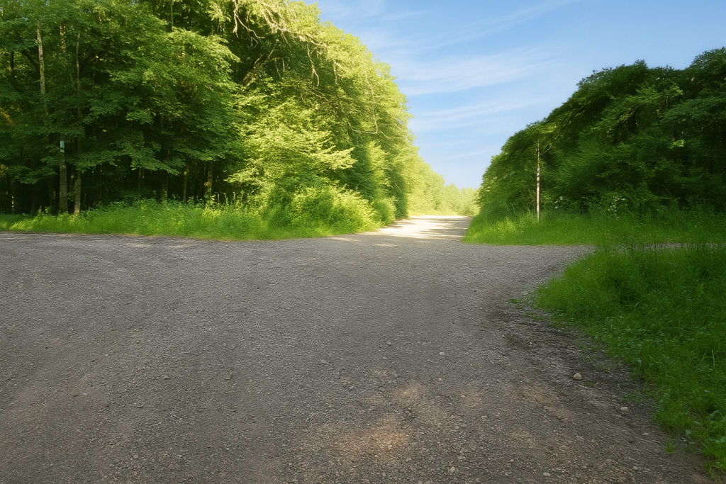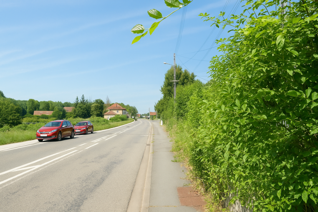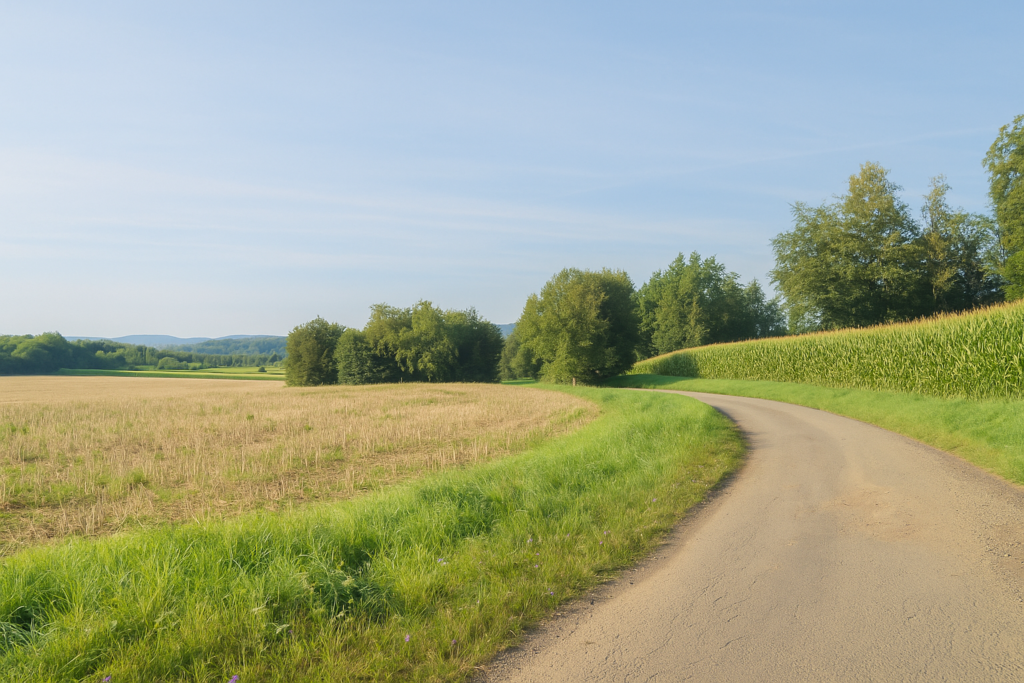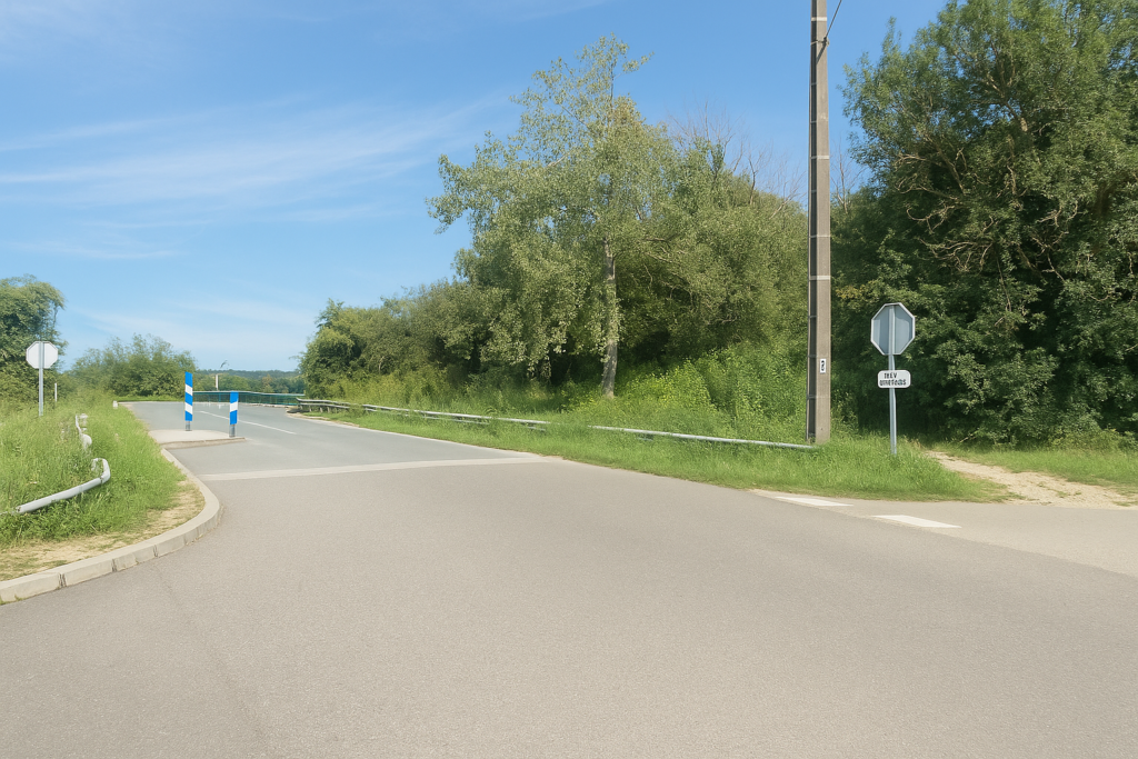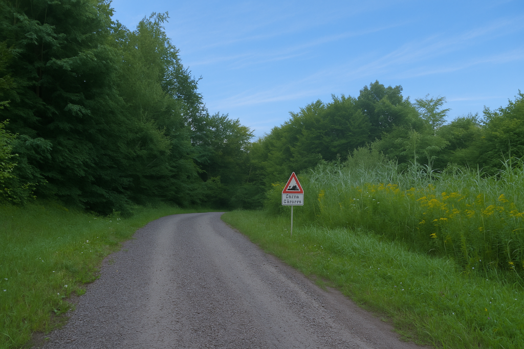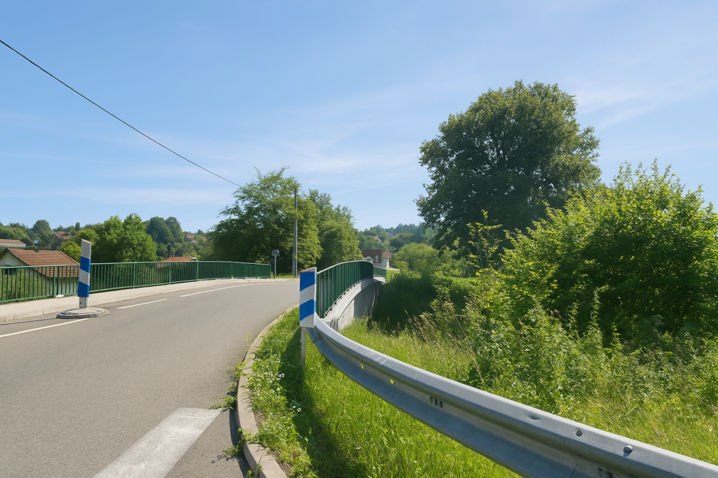 Très vite, le parcours croise une autre route, plus large, qui contourne Delle comme une ceinture. Elle enveloppe la ville, mais ne l’étreint plus. Ce contournement, sans charme particulier, marque pourtant un seuil net. C’est ici, dans cette apparente banalité, que l’on quitte définitivement l’espace urbain. Le souffle s’élargit. |