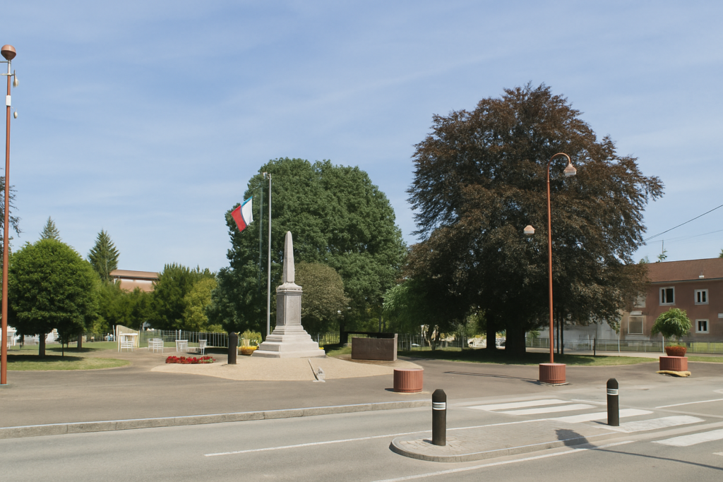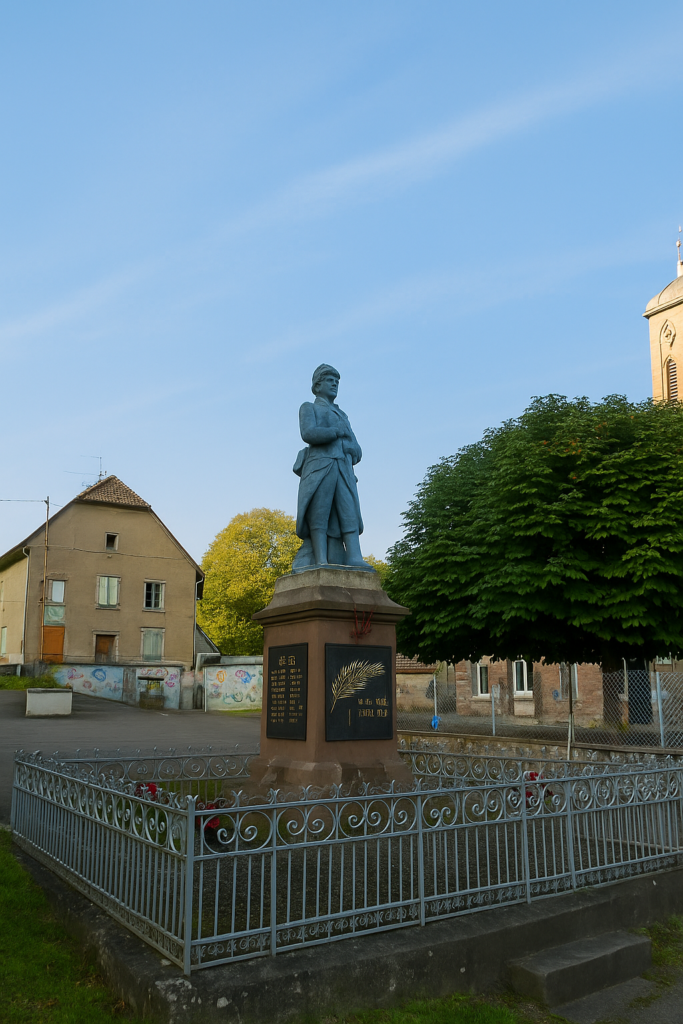 En bas, la route débouche sur un grand carrefour, à l’entrée de Fesches-le-Châtel, bourg d’un peu plus de deux mille âmes. C’est un lieu de passage, un point de croisement entre l’histoire et le quotidien. Mieux vaut ici quitter la départementale, trop rapide, et entrer dans le bourg. On y sent la mémoire ouvrière, encore présente. Fesches-le-Châtel, c’est un de ces villages nourris par l’industrie, marqué par la présence de la dynastie Japy, illustre nom de Belfort, dans l’horlogerie, les pompes, les machines à écrire. On devine, derrière les façades simples, le labeur discret de générations d’ouvriers. |