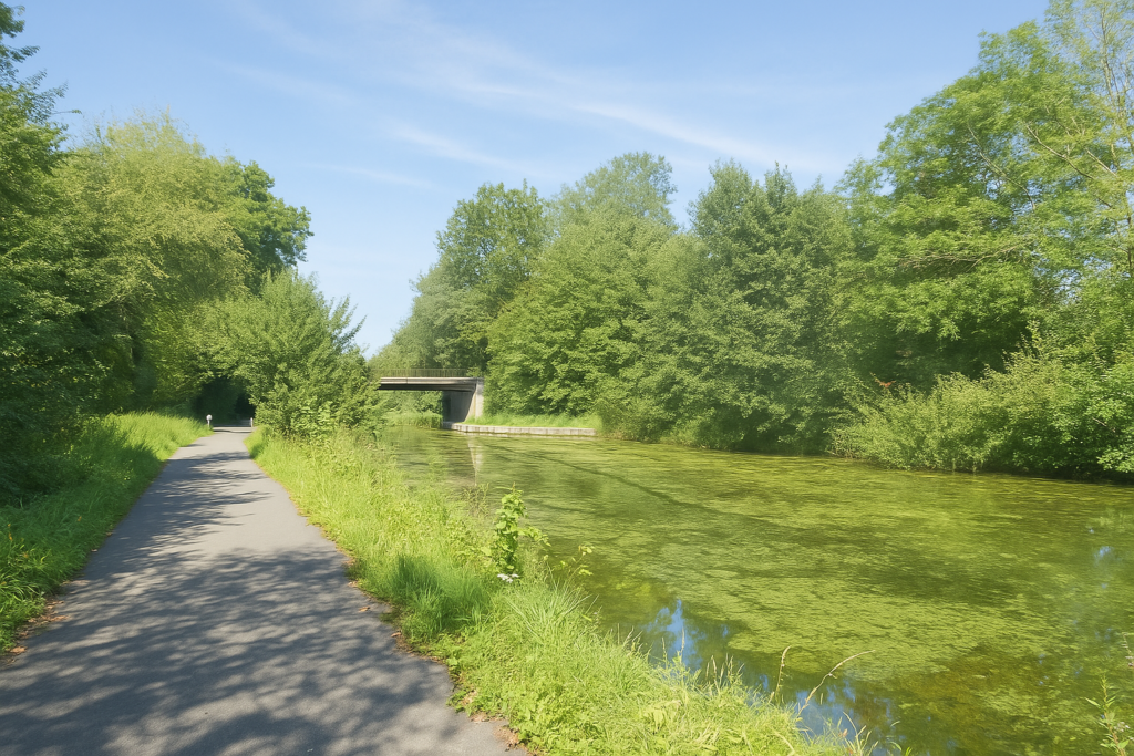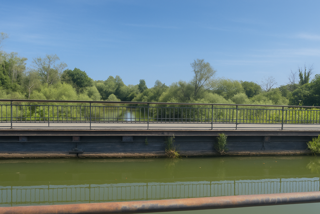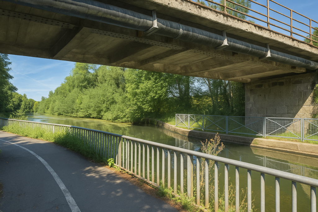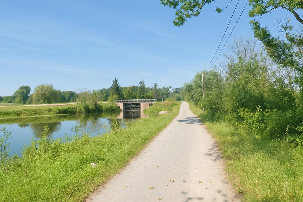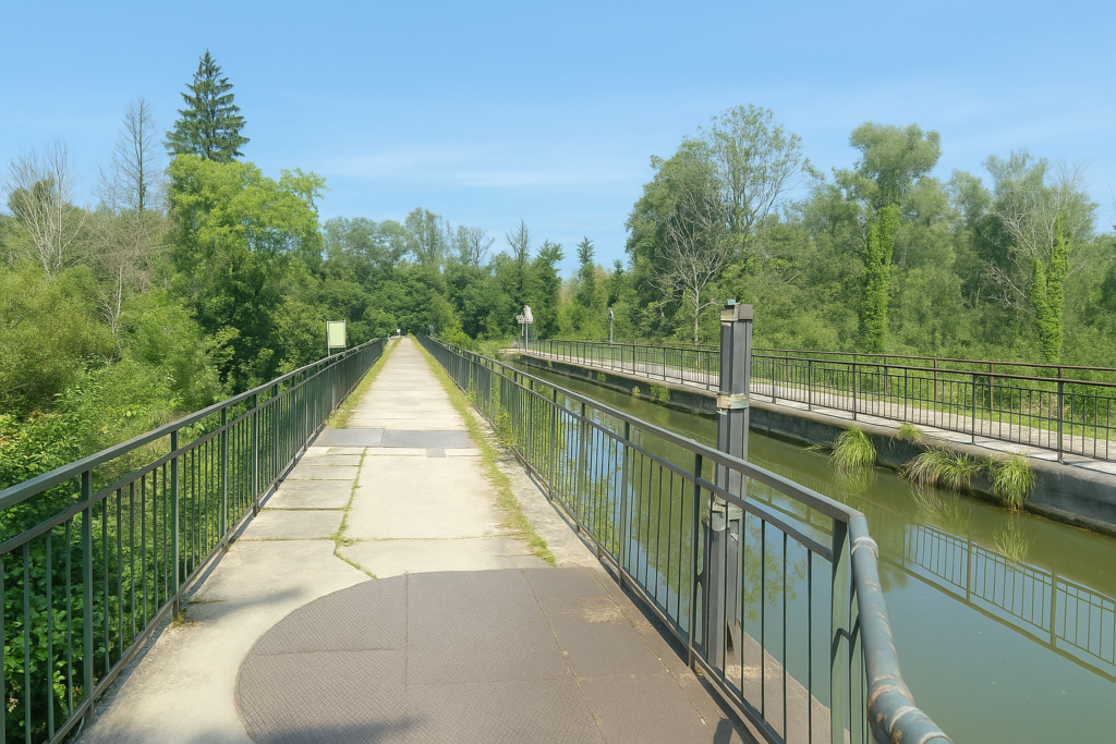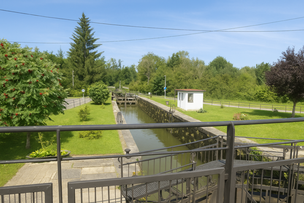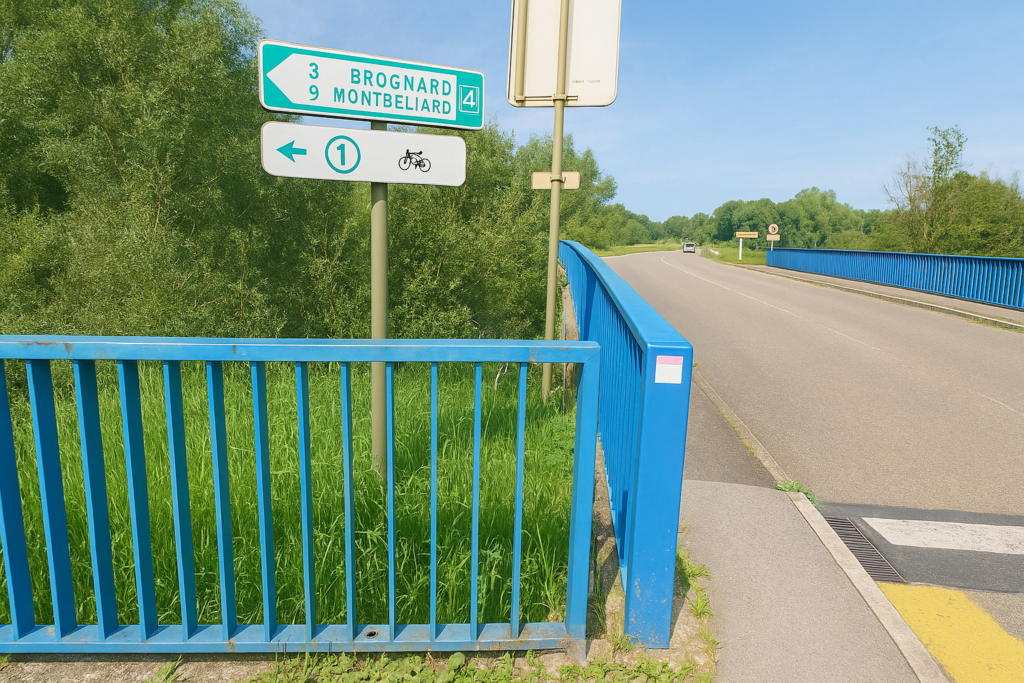 L’écluse, monument discret mais crucial, agit comme un véritable garde-frontière entre les eaux. C’est un petit miracle d’hydraulique : les canaux se croisent, s’élèvent et s’enjambent, passant même par un pont-canal au-dessus de l’Allan qui serpente en contrebas. On ne s’étonnera jamais assez de ces prouesses humaines, surtout quand la magie s’en mêle. Car oui, la piste cyclable passe aussi par ici, dans un entrelacs fluide entre technique et nature. C’est rare, et cela mérite d’être salué, la Franche-Comté n’offre pas souvent de tels moments de grâce. |