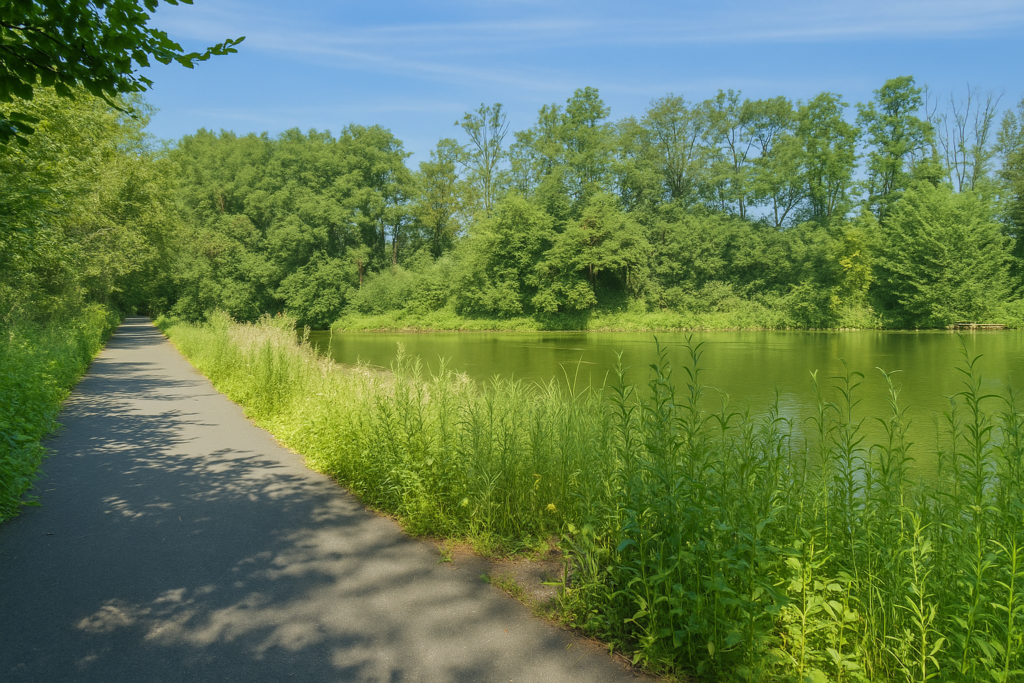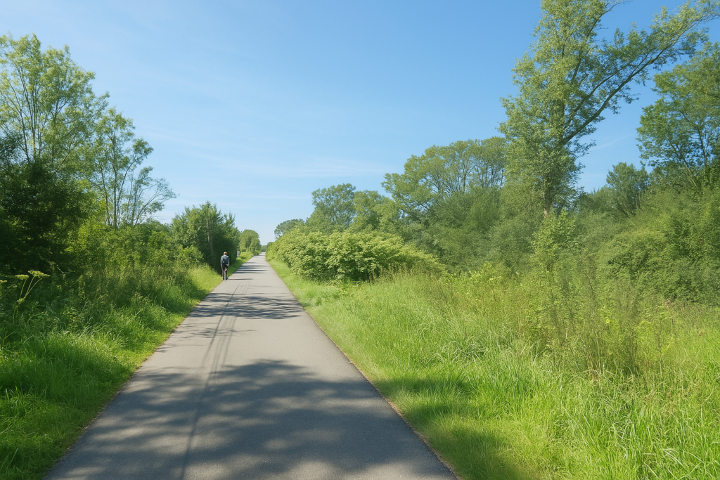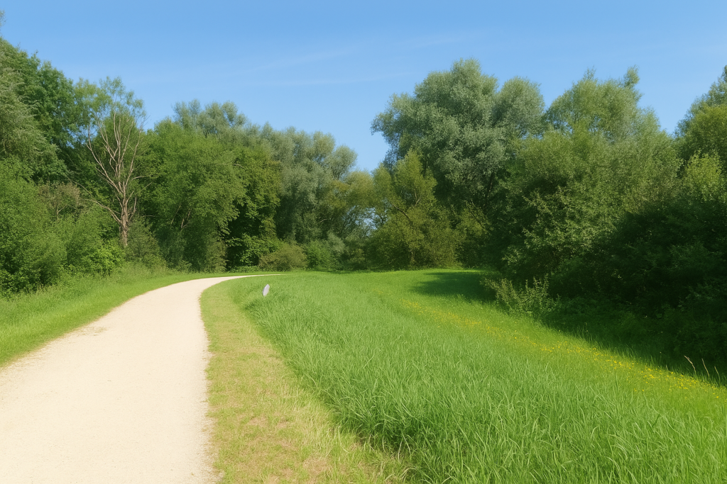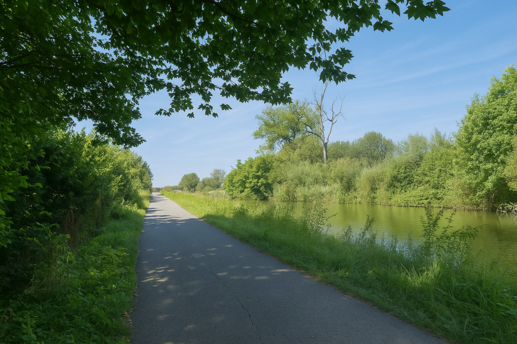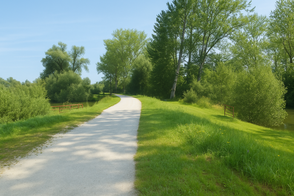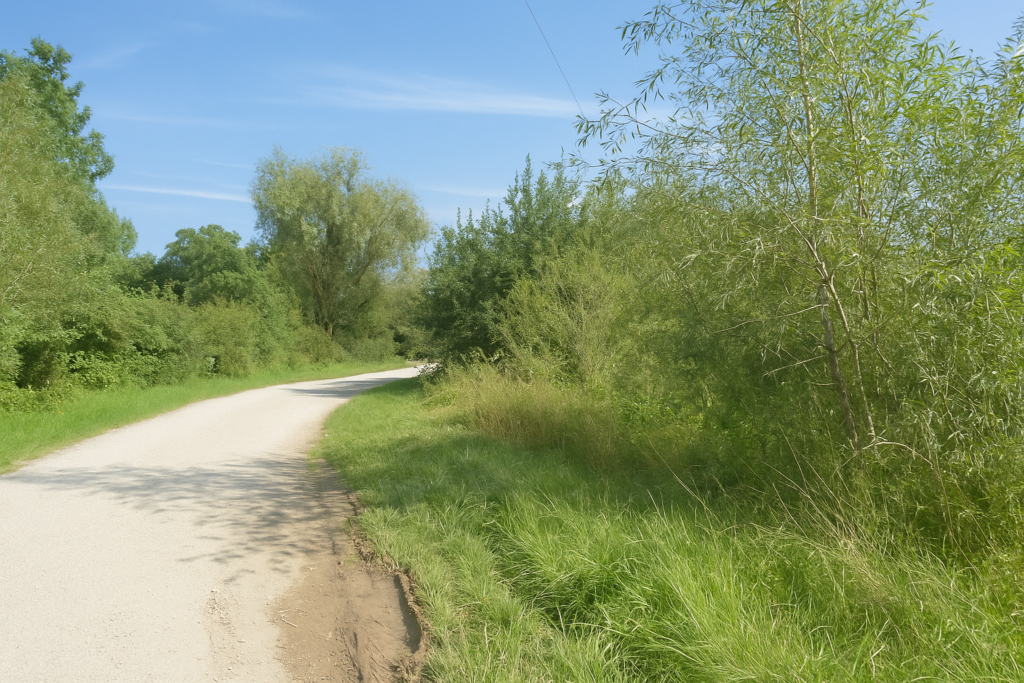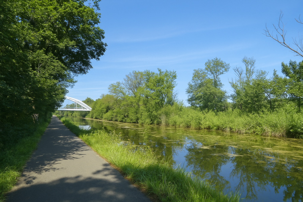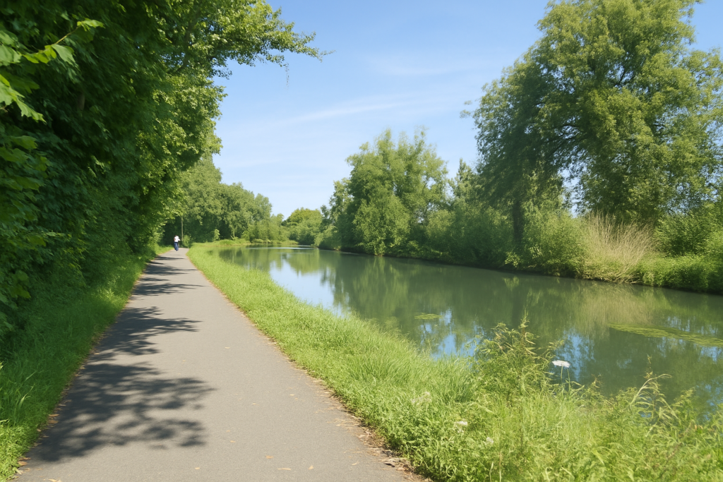 Vous poursuivez alors le long du canal, sur une petite route charmante qu’on appelle ici la Coulée Verte. Ce canal, autrefois artère commerciale entre Saône et Rhône, ne transporte plus de marchandises. Seuls quelques plaisanciers s’y aventurent encore, entre deux branches et roseaux. En revanche, la promenade, elle, est devenue mythique : coureurs, cyclistes, cavaliers et rêveurs s’y croisent dans une douce harmonie. |