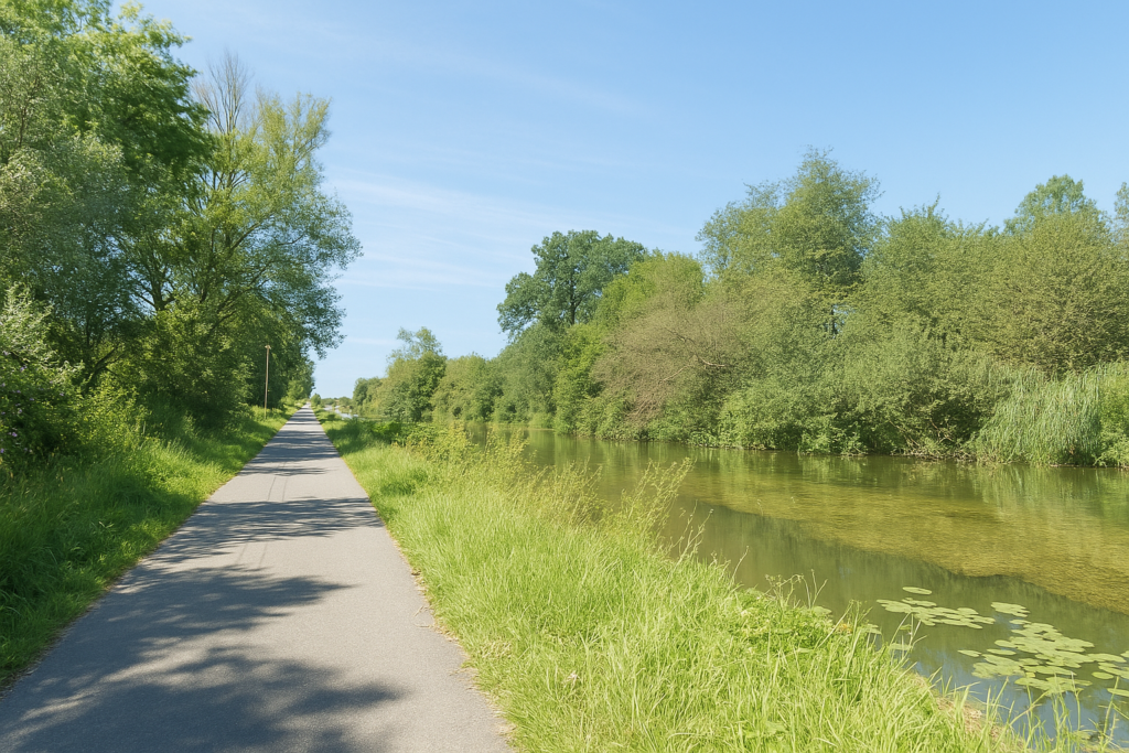 Vous allez traverser trois départements aujourd’hui, comme on tournerait les pages d’un livre aux chapitres bien distincts. Delle, première escale, repose dans le Territoire de Belfort, cette frange orientale que l’on effleure à peine avant de glisser doucement dans le Doubs, par Fresches-le-Châtel et Brognard. Là, un monde s’ouvre, un monde clos d’eau, de forêts et de silence. À peine le temps d’un souffle, et l’autoroute franchie, vous voilà en Haute-Saône. Un autre territoire, une autre lumière. Trois départements, trois visages, et la promesse d’un voyage au long cours, presque initiatique. C’est une étape aussi vive que le vent qui traverse les feuillages, une étape qui décoiffe, qui éveille, qui surprend. On y passe sans crier gare de la forêt la plus dense, presque sauvage, aux berges radieuses du canal du Rhône au Rhin. La transition est brutale, presque irréelle, comme si deux mondes s’entrechoquaient sans se connaître. Dans les bois, c’est la solitude qui règne, souveraine. Rien que les arbres, leurs ombres mouvantes et leurs murmures anciens. La forêt semble sans fin, comme un labyrinthe d’écorce et de mousse où le doute s’insinue, lentement, insidieusement. Se perdre y devient une éventualité plausible, presque poétique. Mais dès que l’on atteint les canaux, tout s’apaise. La lumière s’élargit, le paysage s’ouvre. Le bonheur prend ici des allures de miroir d’eau, de lenteur bienveillante. On respire autrement.