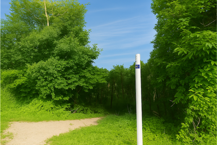 Très vite, vous tomberez sur un panneau, aussi touffu que la forêt qui l’entoure. C’est un carrefour des chemins et des hésitations. En Franche-Comté, les sentiers sont innombrables, les croisements fréquents, et les indications souvent troublantes. Ce panneau en est un parfait exemple. Sous les multiples flèches, une coquille apparaît… juste au-dessous de la direction indiquant Fesches-l’Église. Mais hélas ! elle est encore une fois mal orientée. Si vous suivez cette voie, vous vous égarerez, comme tant d’autres avant vous. Pire encore, l’ancien guide officiel lui-même, pourtant bien intentionné, indique à ce point précis : “Suivez les rectangles verts“. Le nouveau guide récent n’indique plus aucun signe, si ce n’est de suivre le fléchage. Or, pas l’ombre d’un rectangle à l’horizon ! Ils devraient apparaître un peu plus loin, mais ce “plus loin“ demeure un mystère. Ici, c’est clair : il faut avancer tout droit, résolument, dans la direction de Morvillars, même si le parcours ne passe pas par ce village. Paradoxe du Chemin. Élémentaire, mon cher Watson, certes… mais encore faut-il avoir lu le bon chapitre.