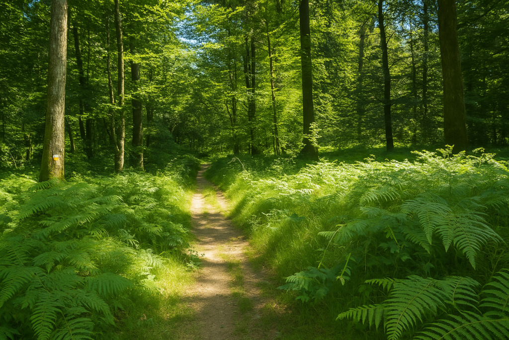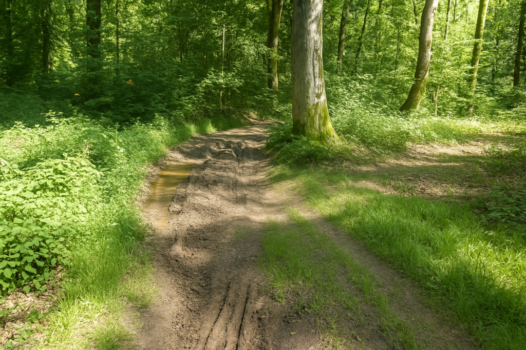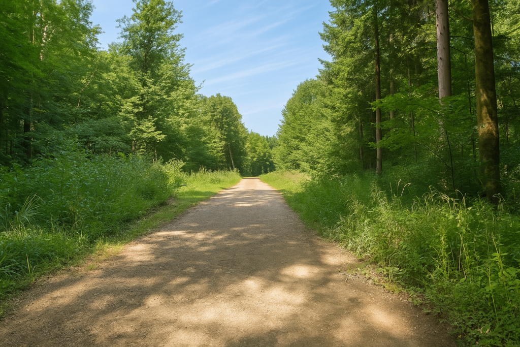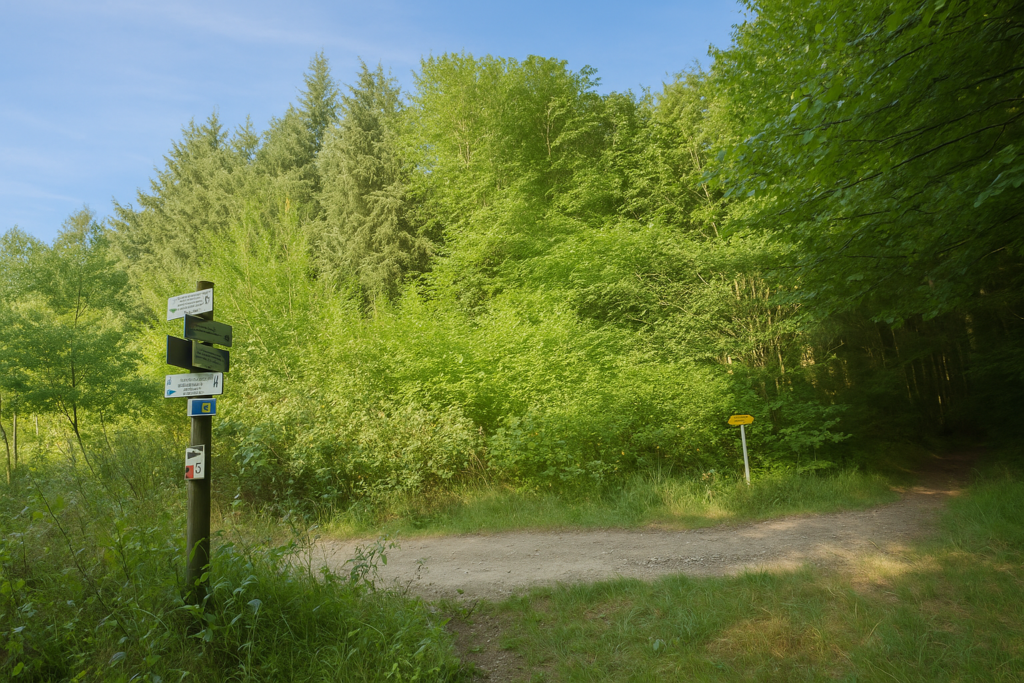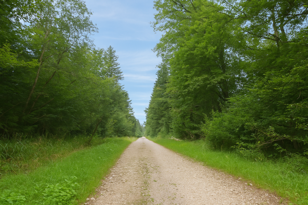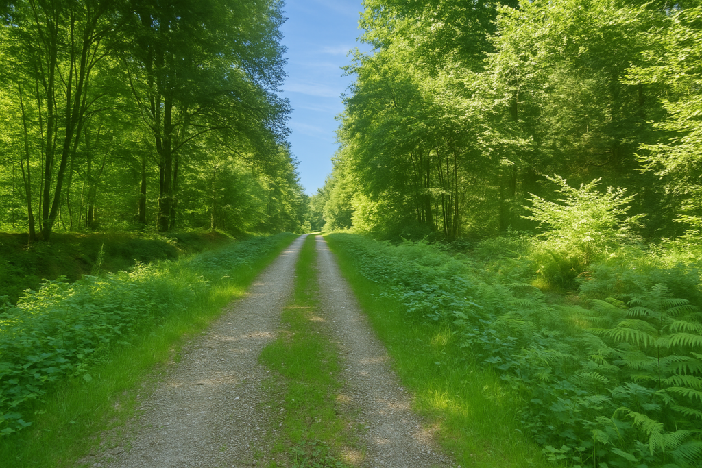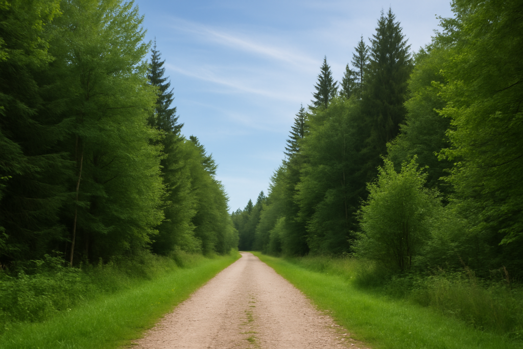 Le tracé est presque rectiligne, filant entre de hauts feuillus et des rangées d’épicéas bien alignés. La promenade devient agréable, régulière, un peu monotone mais paisible, comme une respiration lente au cœur du massif. |