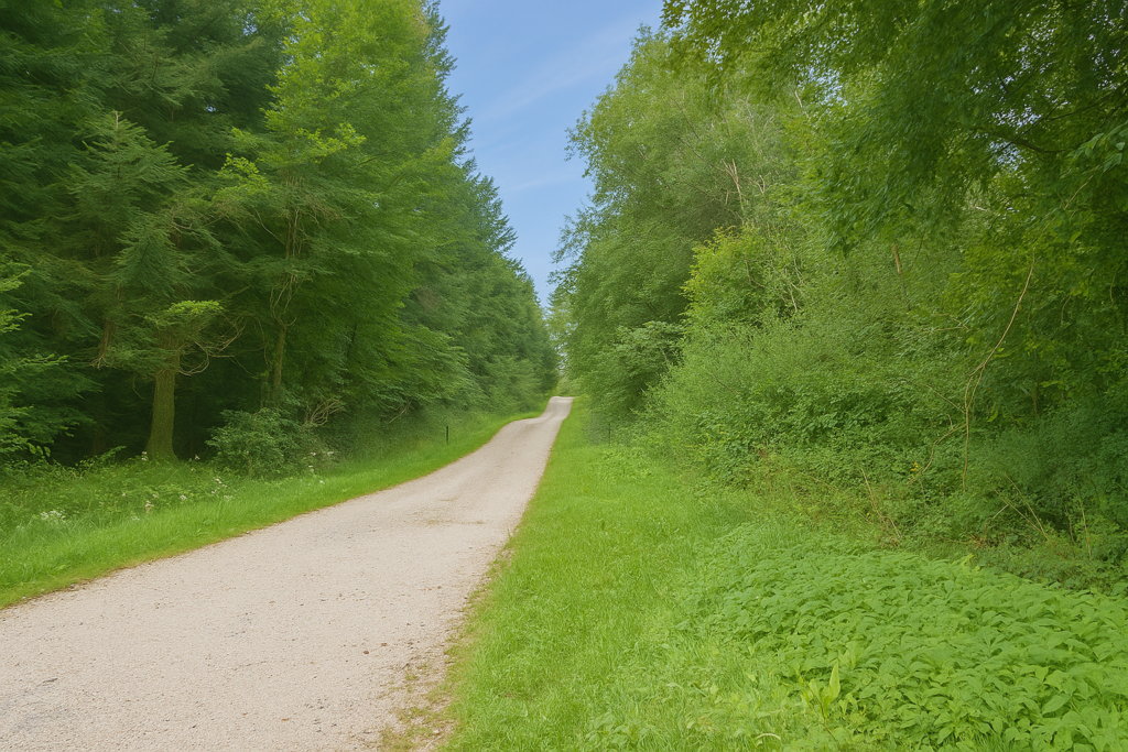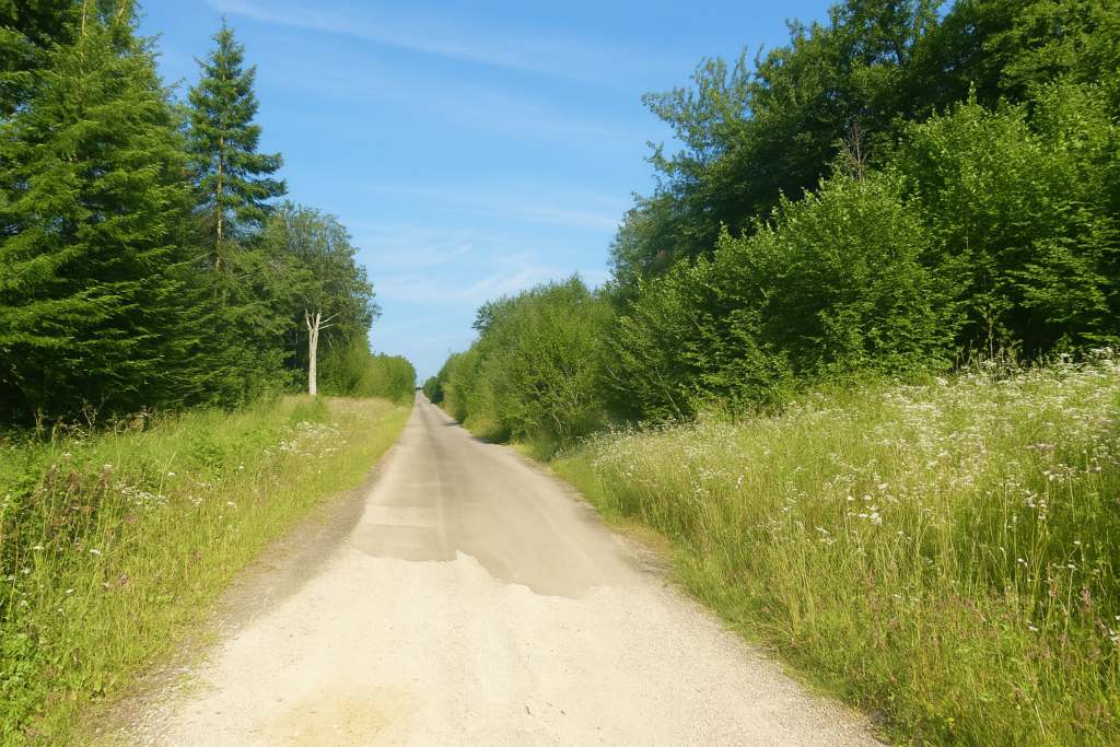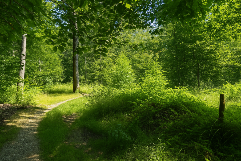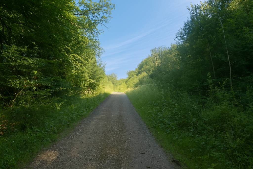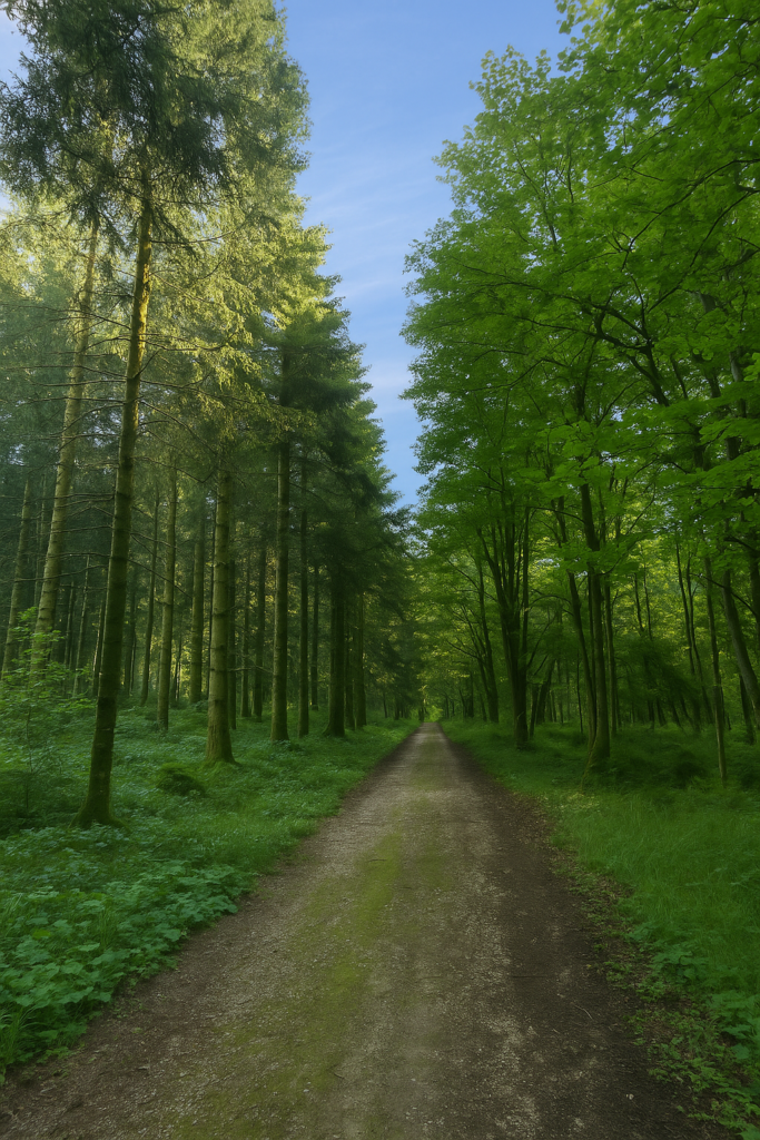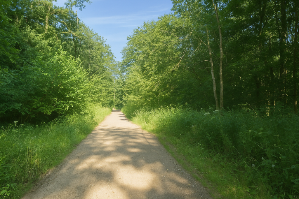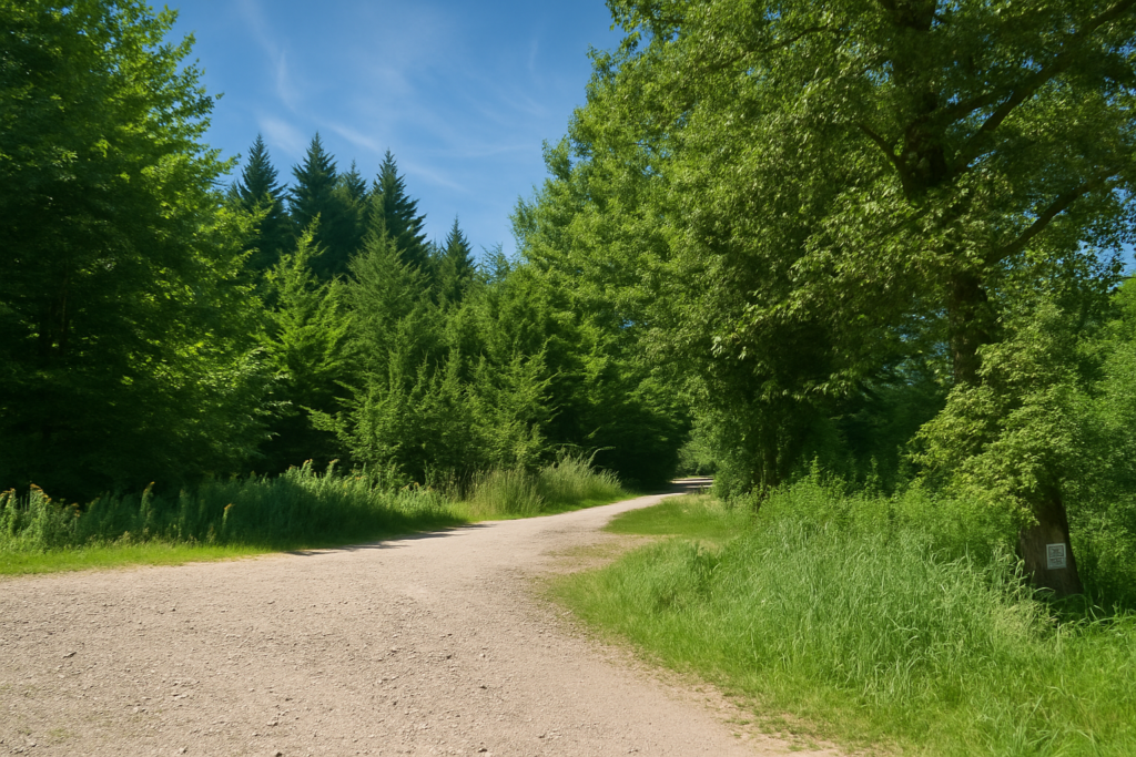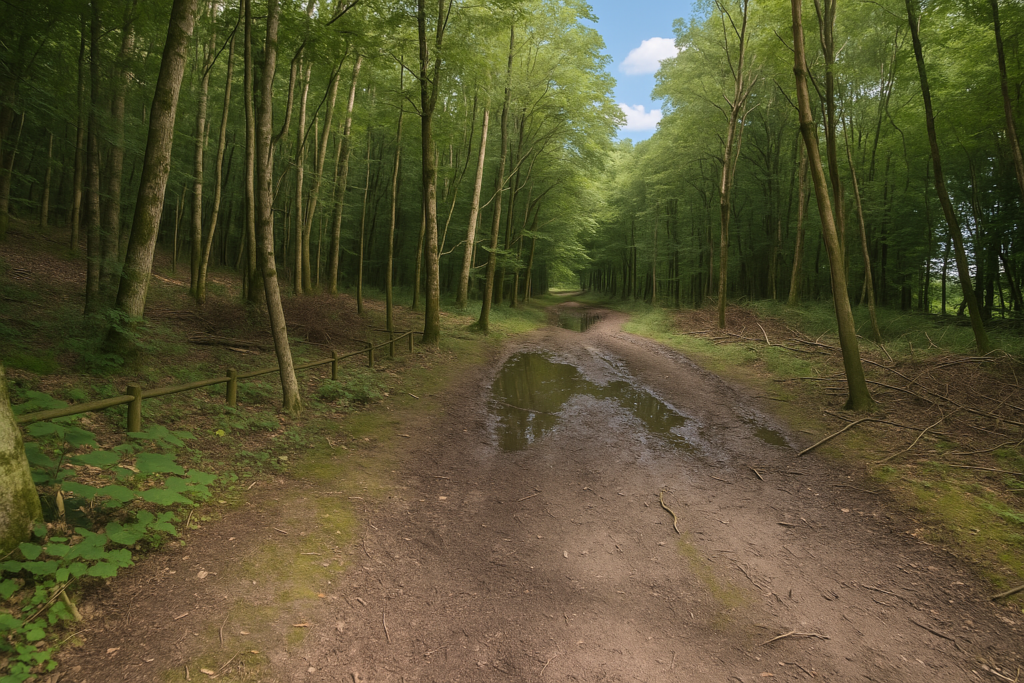 Le tracé est presque rectiligne, filant entre de hauts feuillus et des rangées d’épicéas bien alignés. La promenade devient agréable, régulière, un peu monotone mais paisible, comme une respiration lente au cœur du massif. |