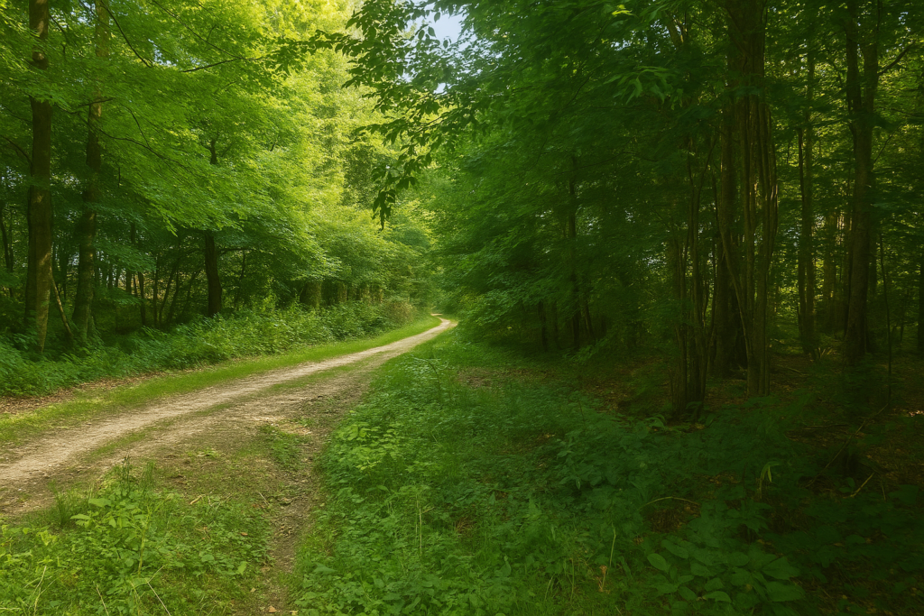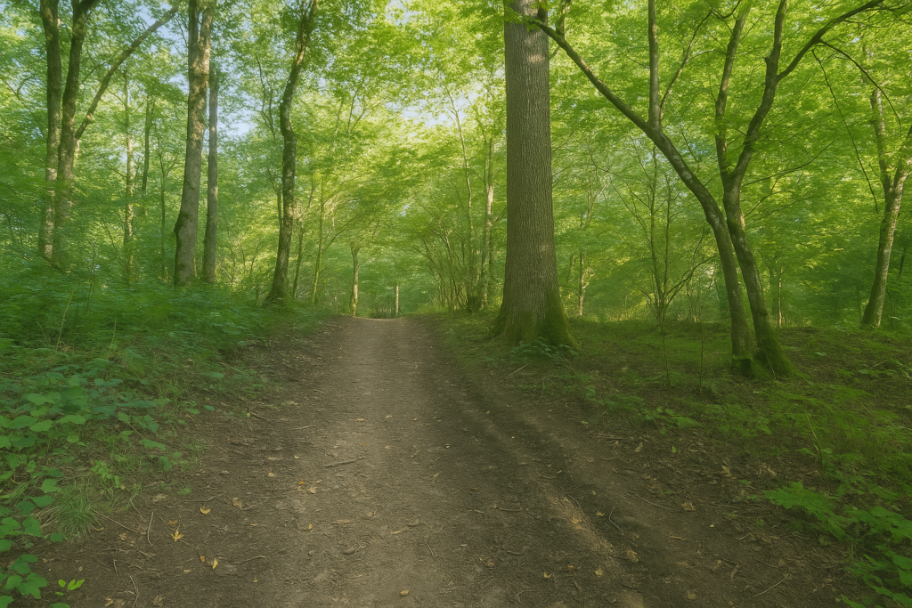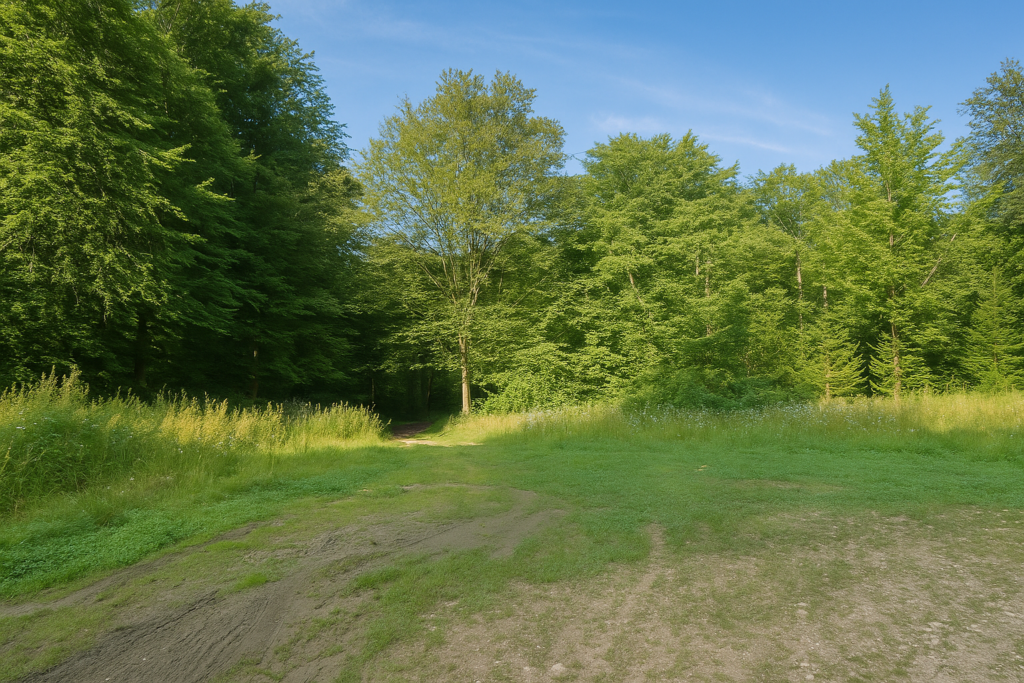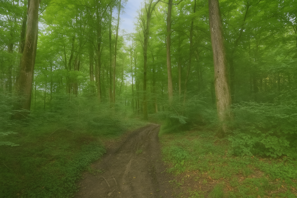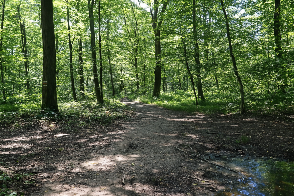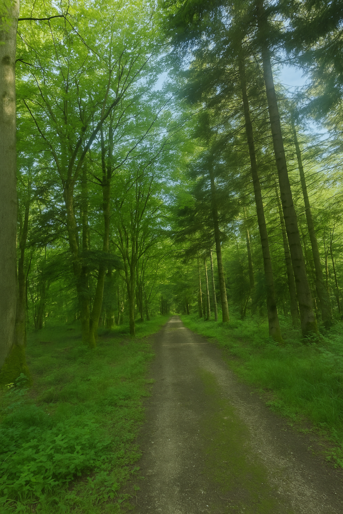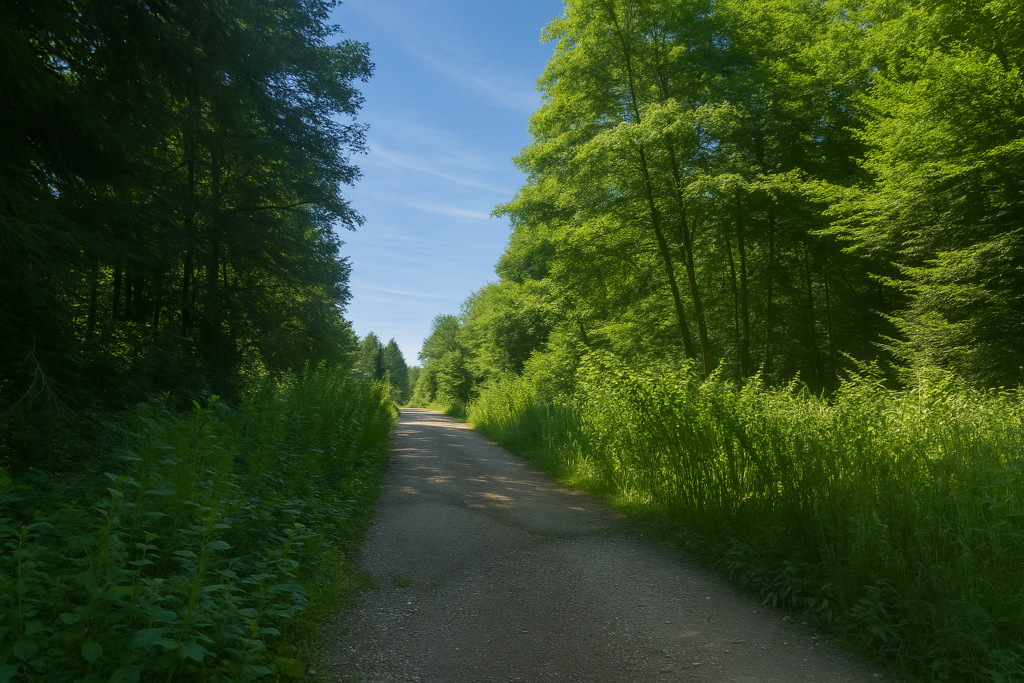 Le tracé est presque rectiligne, filant entre de hauts feuillus et des rangées d’épicéas bien alignés. La promenade devient agréable, régulière, un peu monotone mais paisible, comme une respiration lente au cœur du massif. |