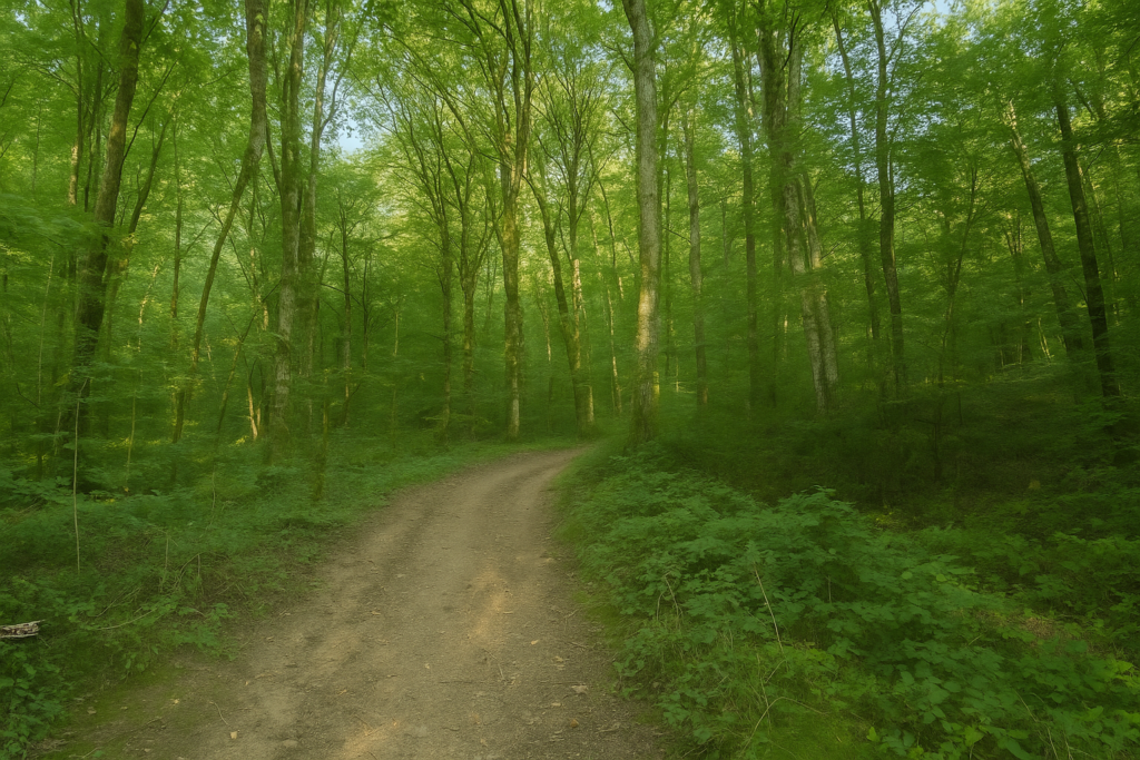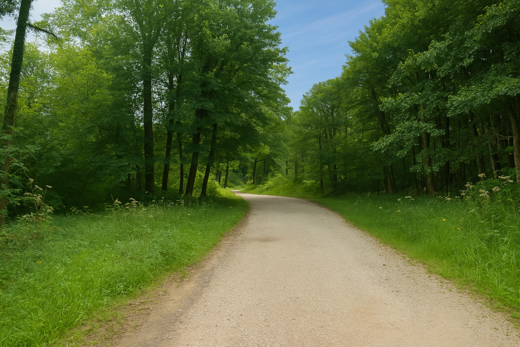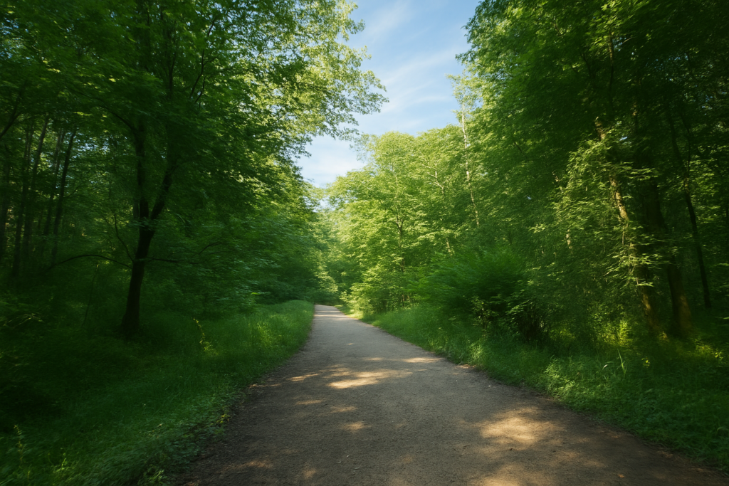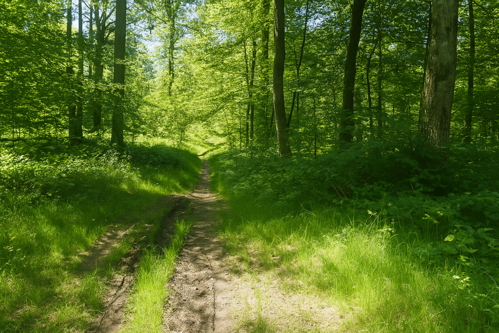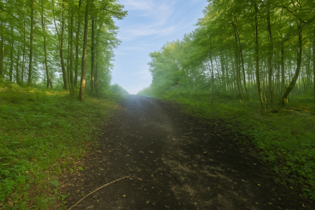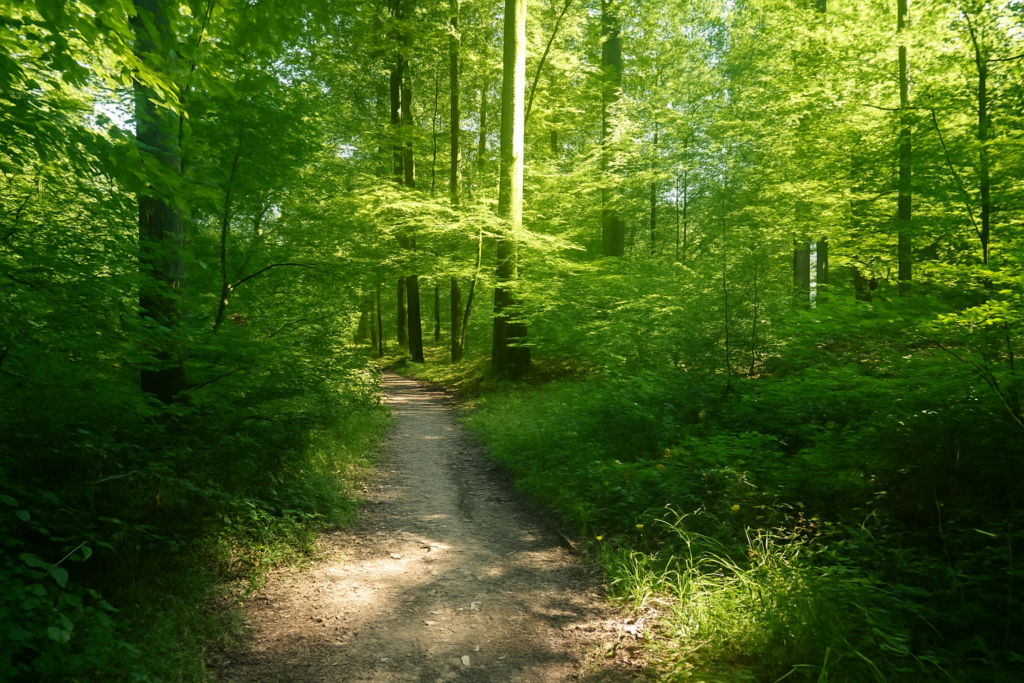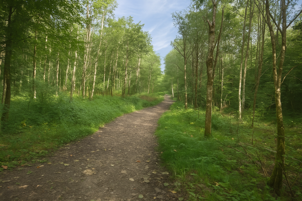 Le tracé est presque rectiligne, filant entre de hauts feuillus et des rangées d’épicéas bien alignés. La promenade devient agréable, régulière, un peu monotone mais paisible, comme une respiration lente au cœur du massif. |