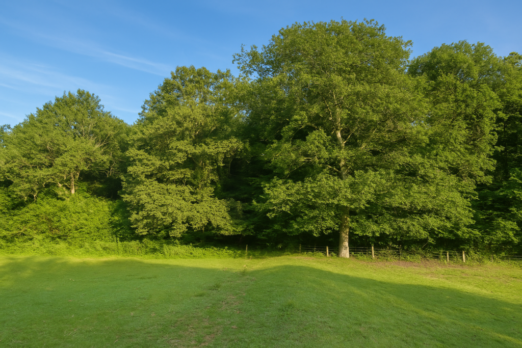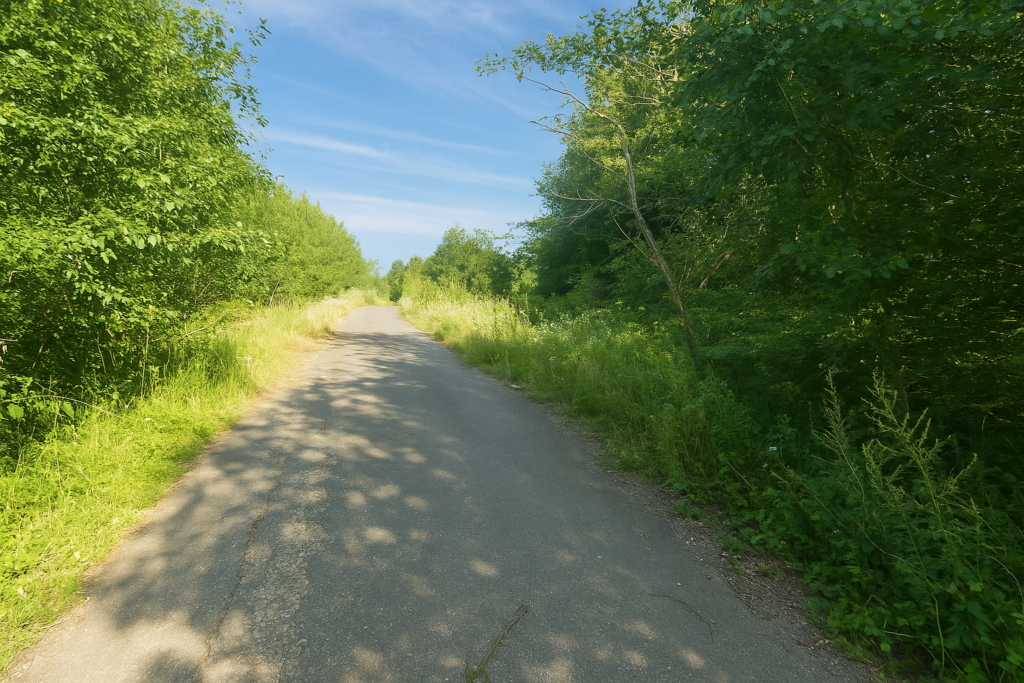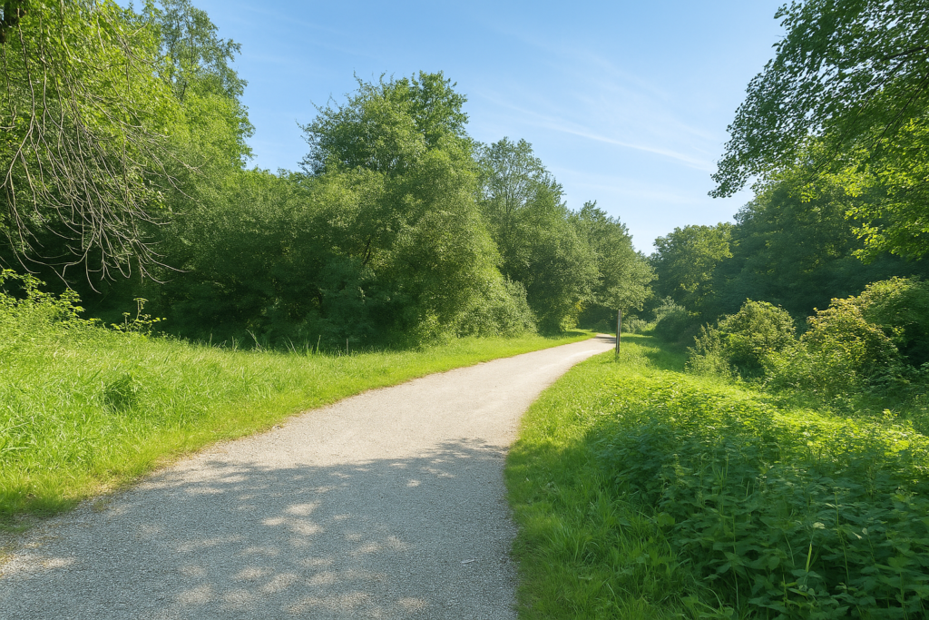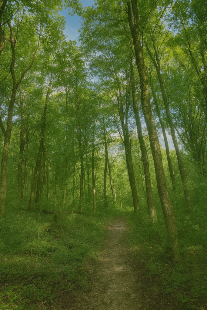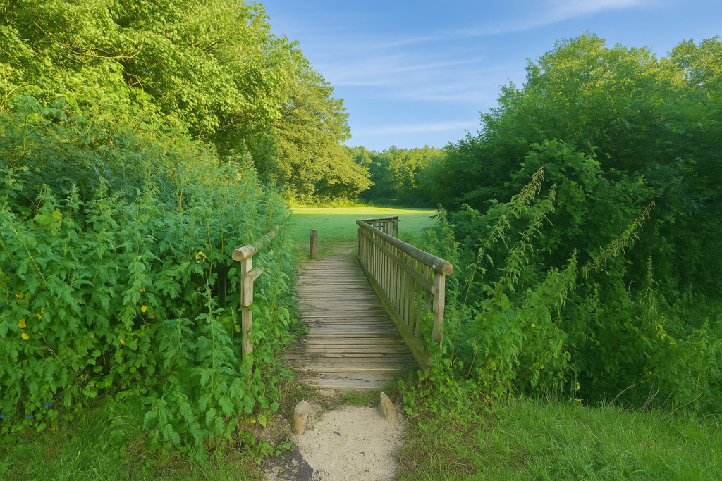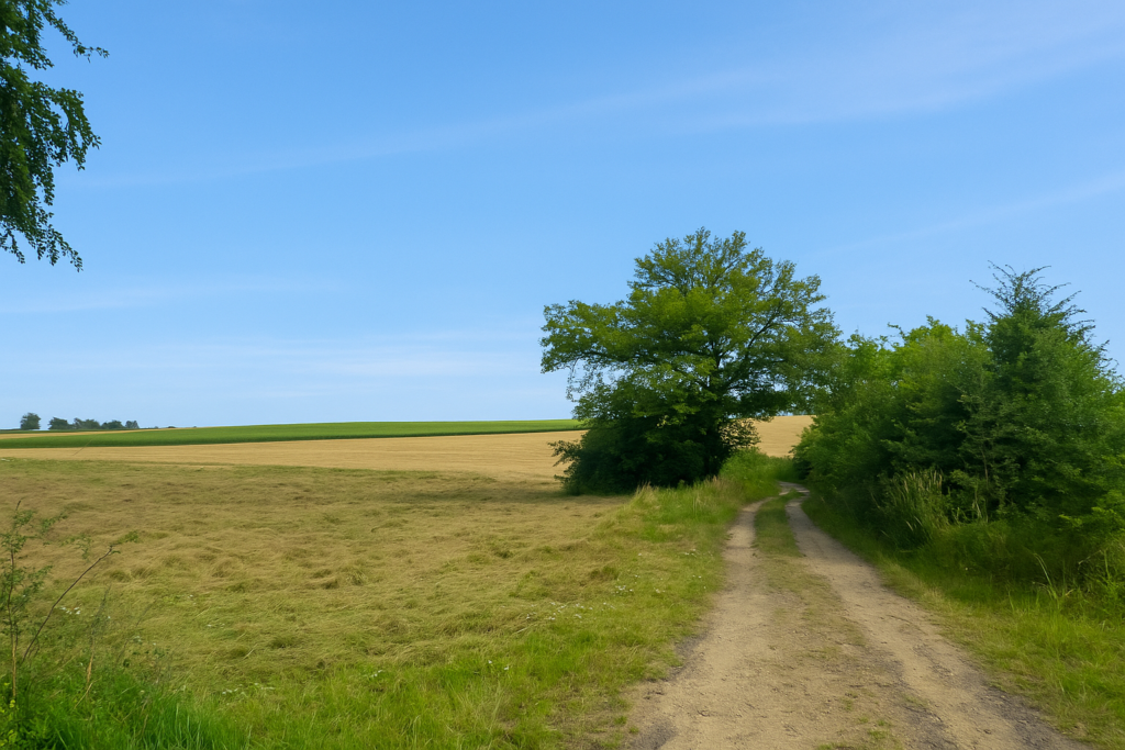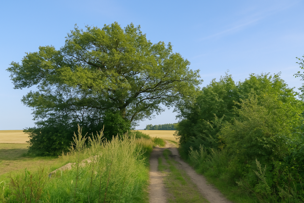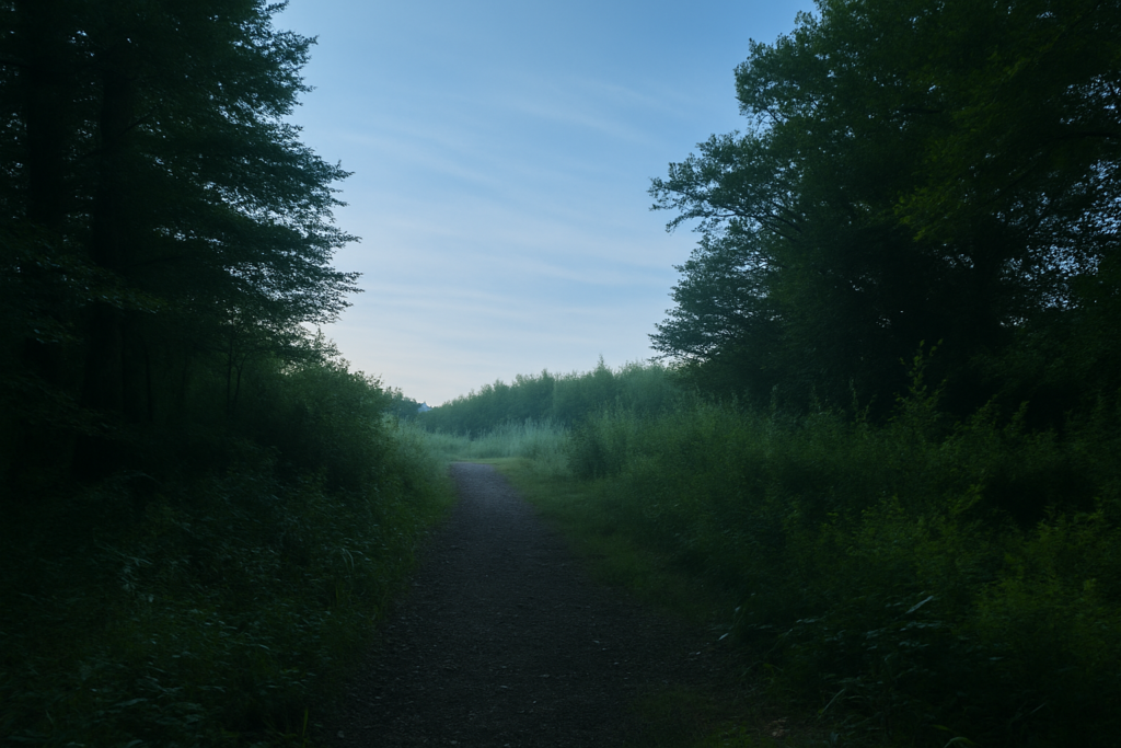 Mais ce tunnel végétal est bref. Peu après, le chemin s’échappe du bois et longe sa lisière, dans une herbe drue et inégale, comme si la forêt, pudique, laissait entrevoir son flanc. Ce passage, mi-clairière, mi-coulisse, accompagne le pas dans une sorte d’entre-deux, un souffle vert au bord de l’ombre. |