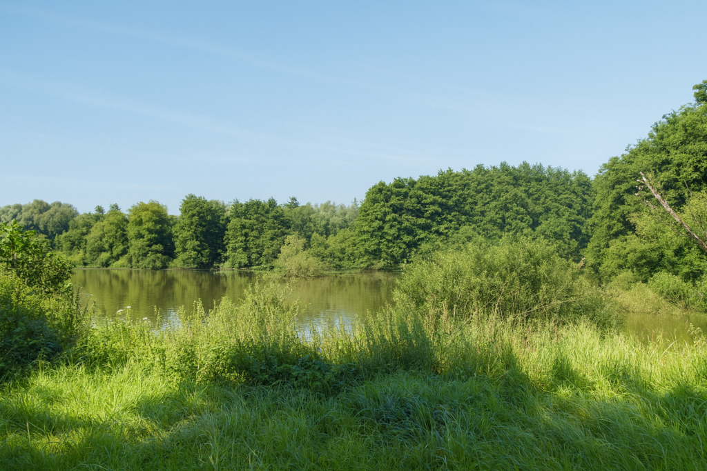 Les étangs sont splendides ici, véritables miroirs d’un ciel généreux. Le seul trouble vient du grondement lointain mais persistant de l’autoroute, qui racle un peu la poésie du lieu. |