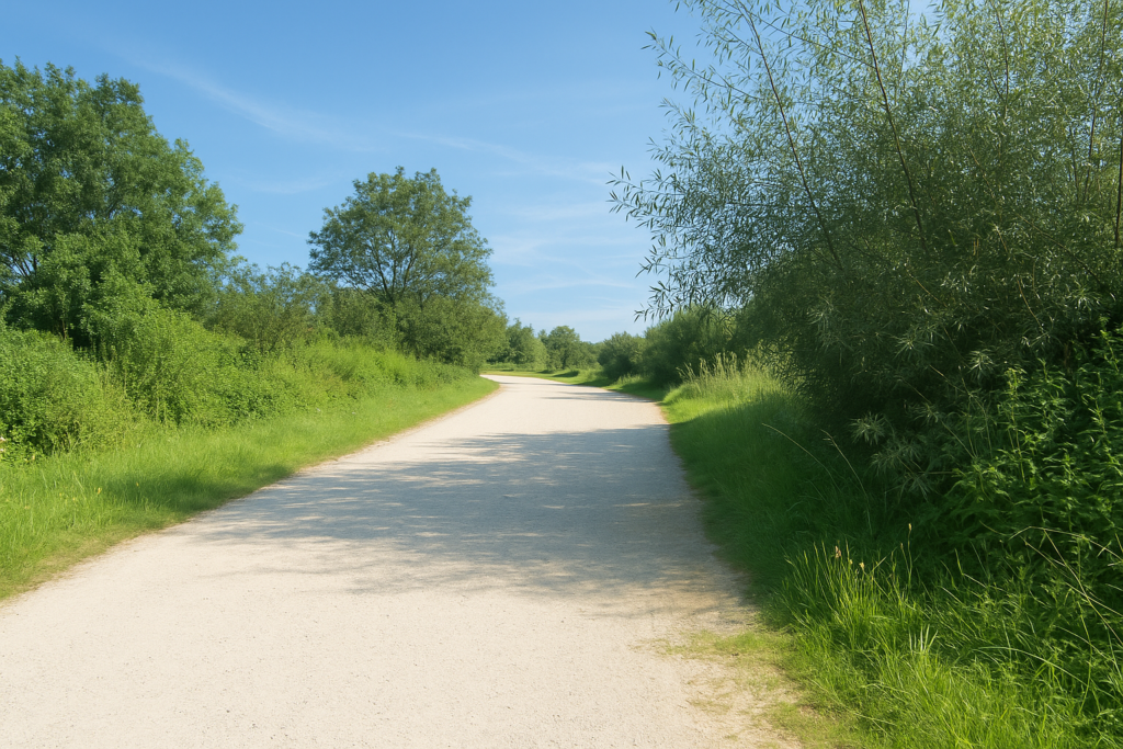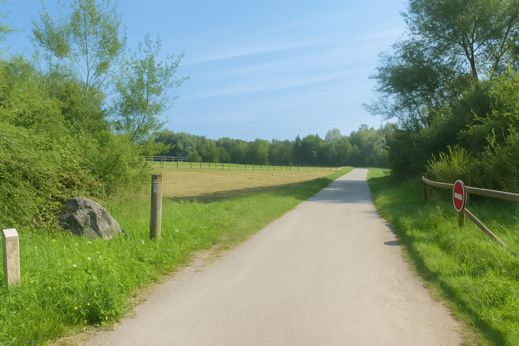 À partir d’ici, le chemin devient plus capricieux. Il entre dans une zone où la piste équestre croise votre parcours. Le sol se durcit parfois sous les sabots imaginaires des chevaux, mais le balisage devient encore plus délicat. |