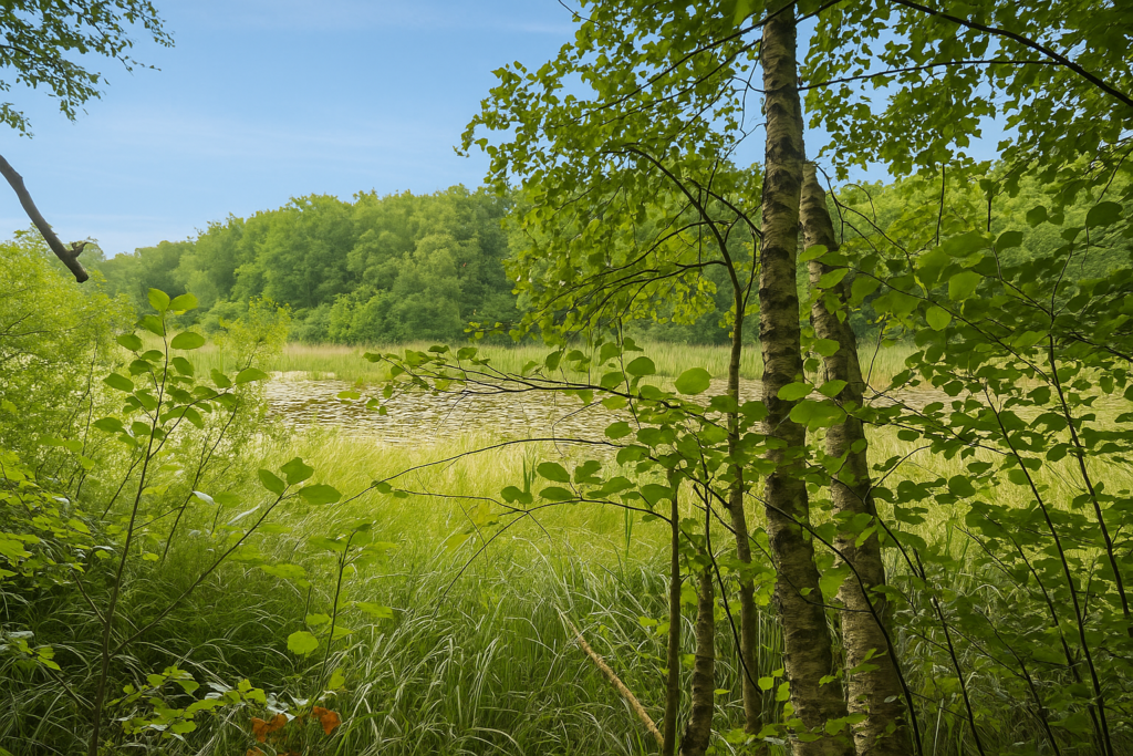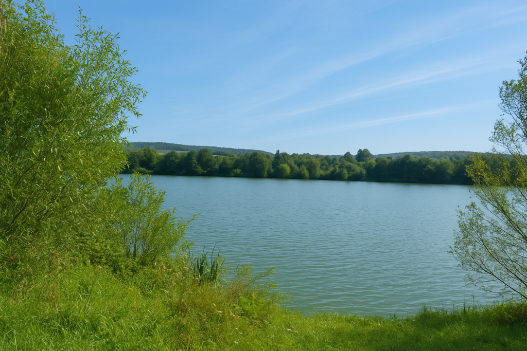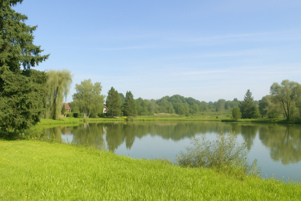 Peu après, le chemin contourne le Grand Étang, masse d’eau paisible, lovée au cœur de cette nature sauvage. Le lieu a quelque chose d’intact, de primitif presque. Rien ne bouge. Pas un frisson dans l’eau, pas un souffle dans les branches. Même les crapauds, ces bavards des soirs d’été, semblent avoir fait vœu de silence. L’endroit est si retiré, si calme, qu’on s’y sent presque intrus. On chuchoterait, comme dans une cathédrale verte. |