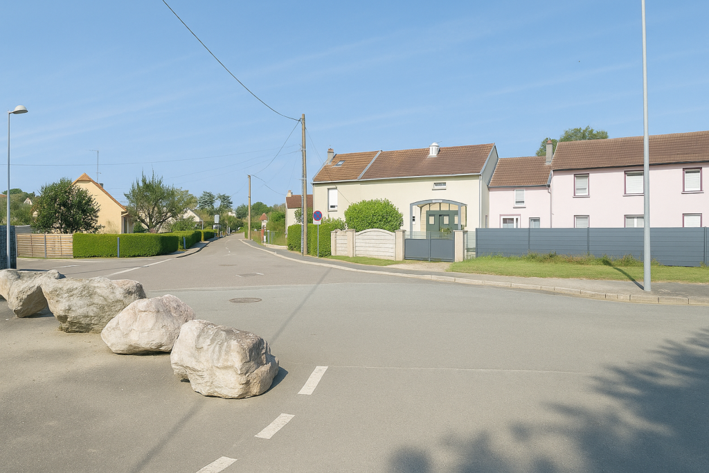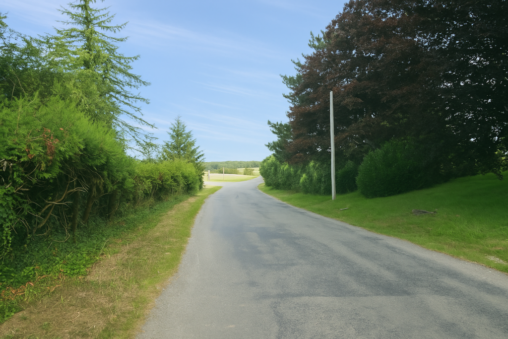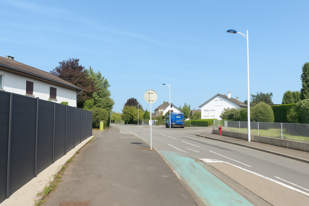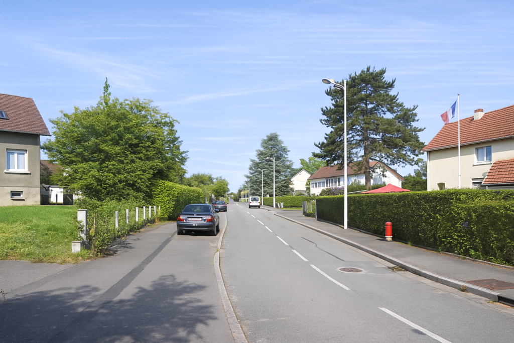 La route descend alors doucement, glissant entre les lisières du bois et les villas paisibles, jusqu’à croiser la Rue du Puit. Les maisons sont sages, les clôtures bien rangées, les jardins assoupis. On sent que la nature, ici, a été domptée, maîtrisée, urbanisée.