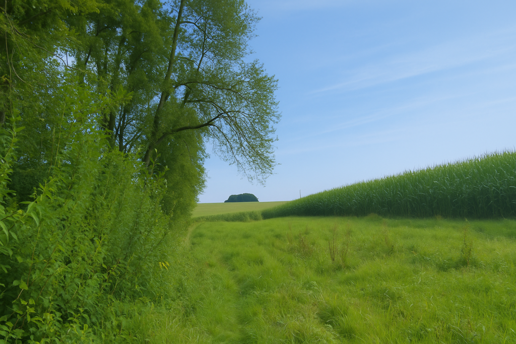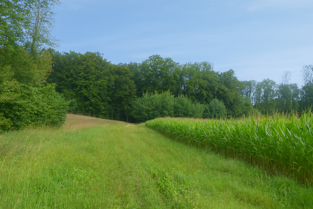 Devant vous s’étendent à nouveau les champs de céréales, ponctués, bien sûr, par les éternels maïs. Mais cette fois, le paysage semble respirer. |