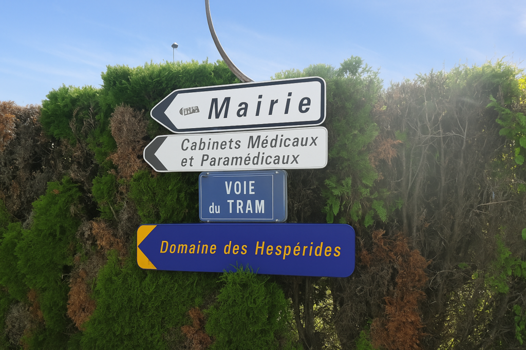 Aux carrefours, où la logique voudrait des panneaux clairs, il faut souvent deviner. En principe, sans autre indication, on poursuit tout droit. Mais ce principe, comme tous les principes, souffre d’exceptions. Pour corser l’affaire, d’autres chemins s’entrelacent. Certains, marqués d’un cercle jaune, côtoient la voie du pèlerin. Le Chemin équestre, lui, flamboie en orange. Une fête de couleurs, certes, mais aussi un festival de confusions. Simple, non ? Dans cette banlieue étirée que l’on traverse longuement, ne vous laissez pas berner par la coquille. Elle est là, mais elle trompe. Sur les chemins officiels, comme le GR65, la base de la coquille indique la direction : ce serait à gauche, ici. Mais ce n’est pas le GR65. Ici, la coquille ne dit rien d’autre que : “Vous êtes là“. Rien de plus. Le parcours, en vérité, continue droit devant, sans détour, sans promesse. C’est une leçon qu’on apprend vite, parfois à ses dépens. Une école de vigilance. |