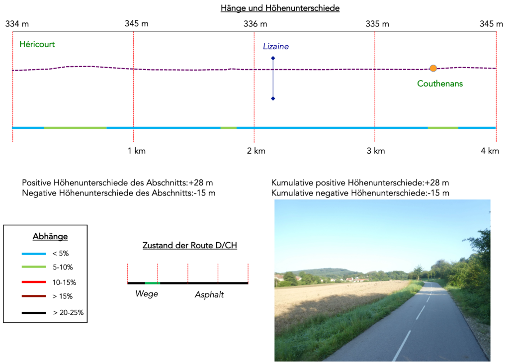 Für die tatsächlichen Höhenunterschiede lesen Sie bitte die Hinweise zur Kilometerangabe auf der Startseite noch einmal durch.