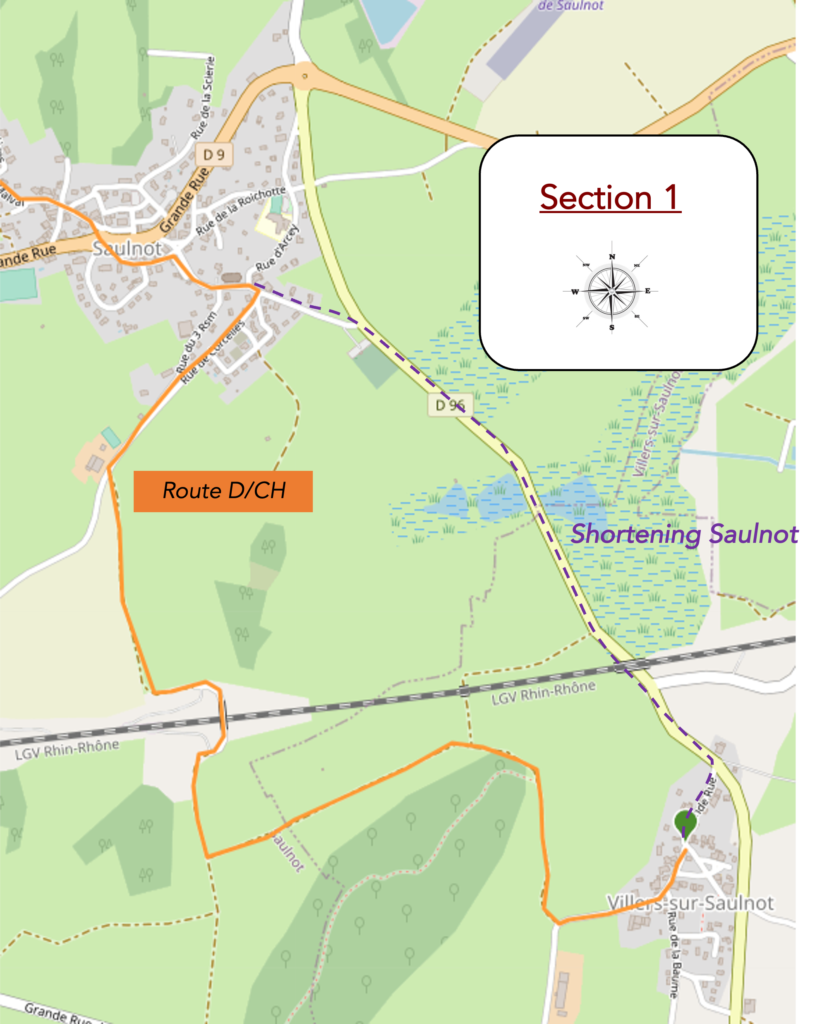 | Here the route leaves the departmental road in order to enter Saulnot by a more intimate access. | |