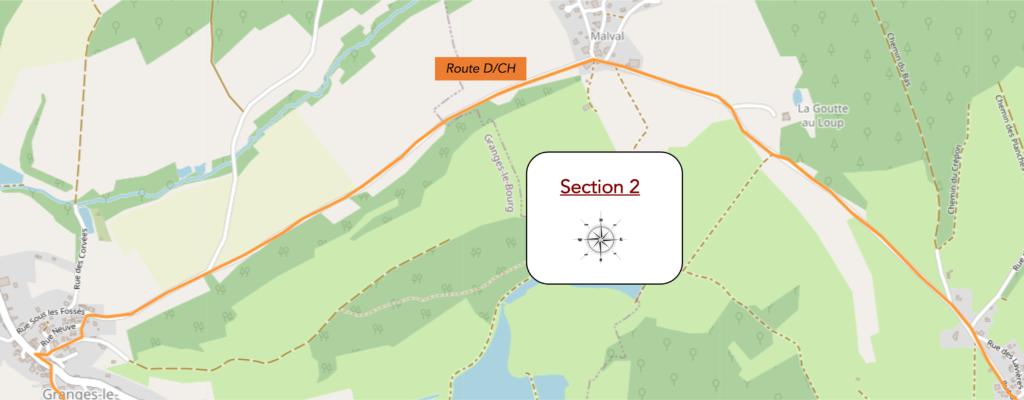 | After two kilometres without relief, the road reaches Granges-le-Bourg. It straightens slightly, as if to show that entry into the village still has to be earned a little. | |