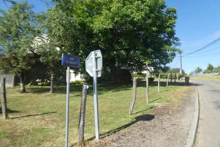| The road then winds through the village, turns at right angles, continues, branches off again, until it finds Rue de Magny. | |