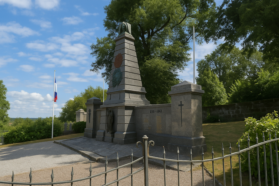 | Près d’un lavoir désuet, on aime célébrer les héros locaux qui ont participé à la guerre de 1870. |