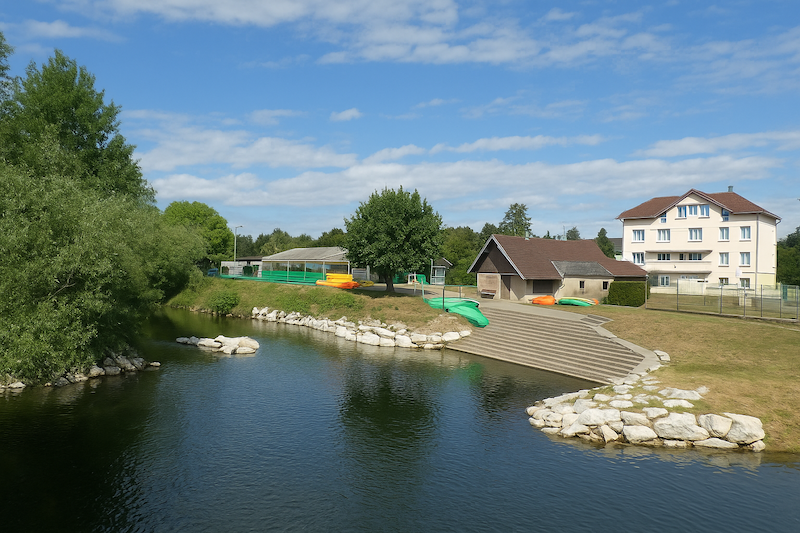 | Peu à peu, la route s’éloigne du tumulte léger de cette base de loisirs, pour longer la rive dans une traversée des prés. Le murmure du courant n’est jamais bien loin, à peine voilé par les feuillages. |