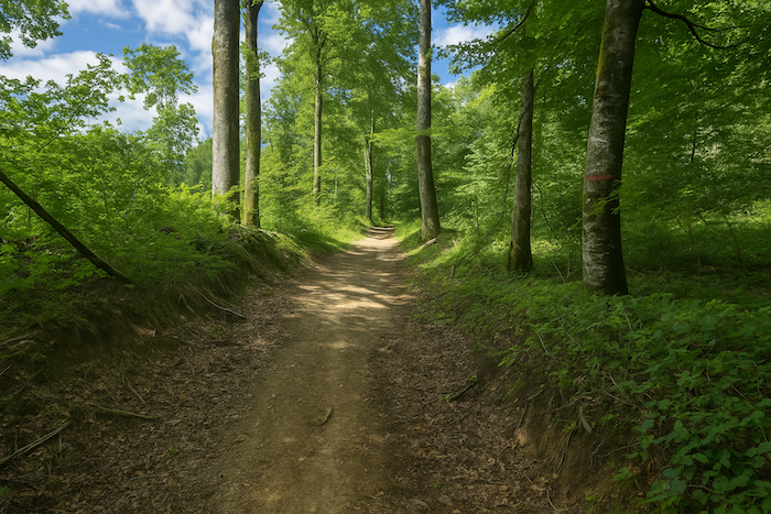 | Alors que le chemin se resserre, les hêtres et les chênes retrouvent toute leur majesté, dressés fièrement le long de cette voie étroite. Parfois, ces forêts semblent s’animer d’une aura magique, comme une promesse d’émerveillement, une invitation à croire à l’invisible. |