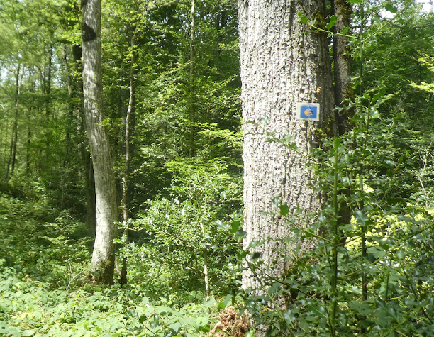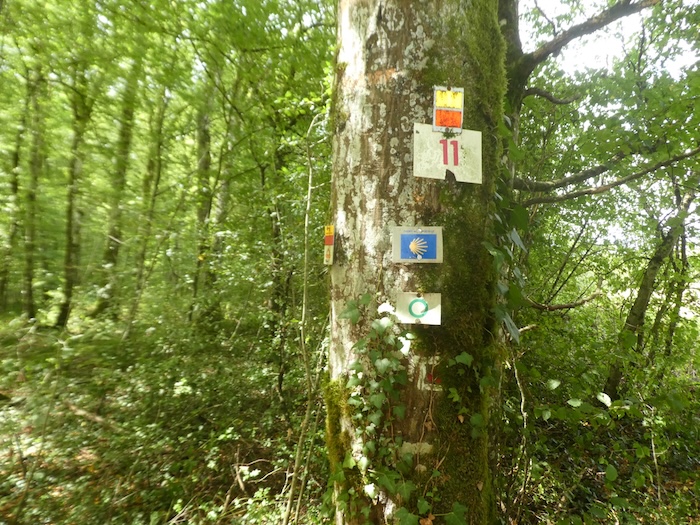 | Et dans cette vaste étendue sylvestre, les coquilles deviennent précieuses, presque vitales. Elles guident, elles rassurent, elles sauvent de l’égarement. Suivez-les comme on suit les étoiles, même si elles ne sont jamais orientées correctement, mais parfois la flèche vous donne la bonne direction. |