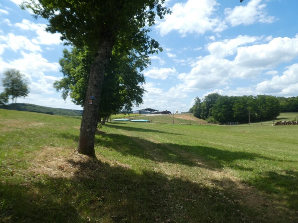 | À l’intersection suivante, le chemin contourne la ferme, et une indication discrète signale un gîte niché à Les Pateys, invitation à une halte chaleureuse, une pause bien méritée pour qui arpente ces terres avec patience et respect. |