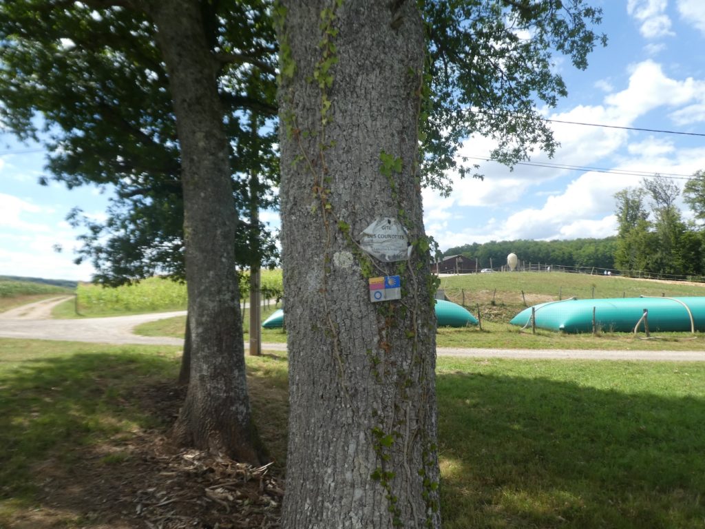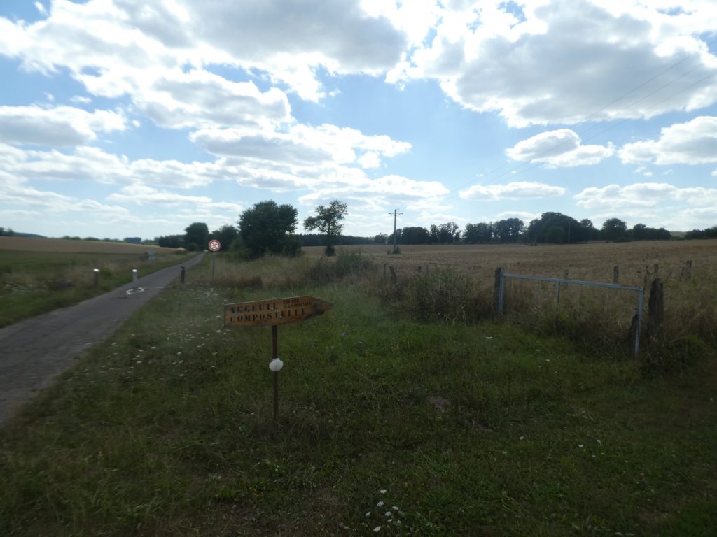 | Plus loin, la route longe quelques maisons éparses au lieudit Les Gillots, où, tout près, un accueil pour les pèlerins de Compostelle ouvre ses portes. |