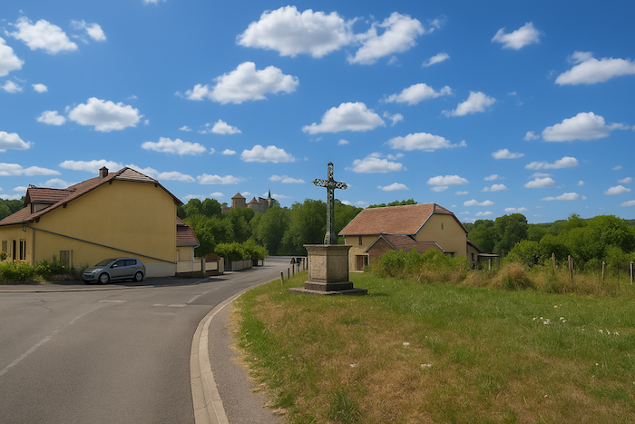 | Rapidement, la route conduit au village de Vallerois-Le-Bois, dont les belles maisons de pierre, solides et patinées par le temps, dessinent un tableau vivant d’authenticité rurale. Ce village, au charme simple et sincère, déploie ses ruelles tranquilles sous un ciel souvent clair, comme une invitation à ralentir, à écouter les voix du passé. |