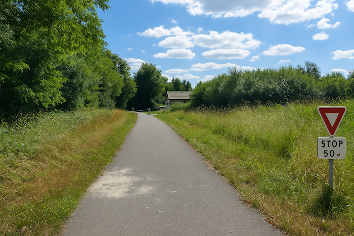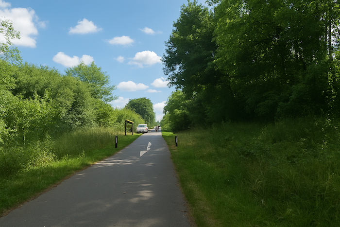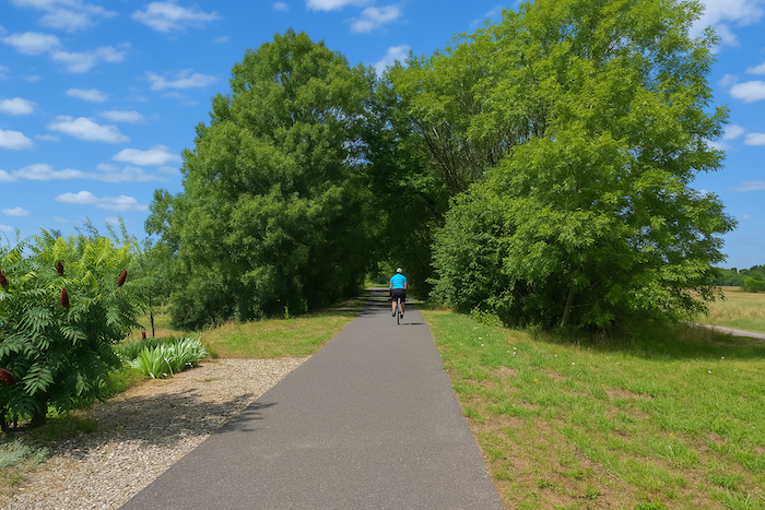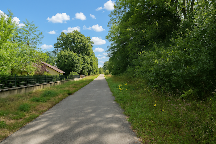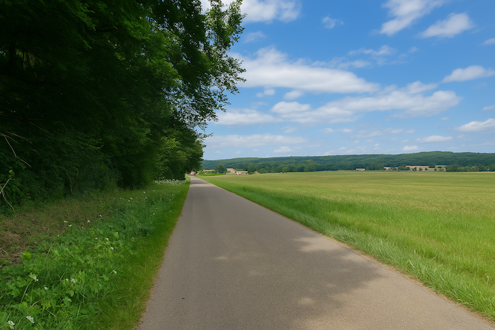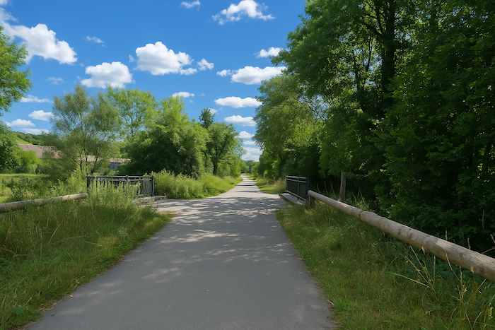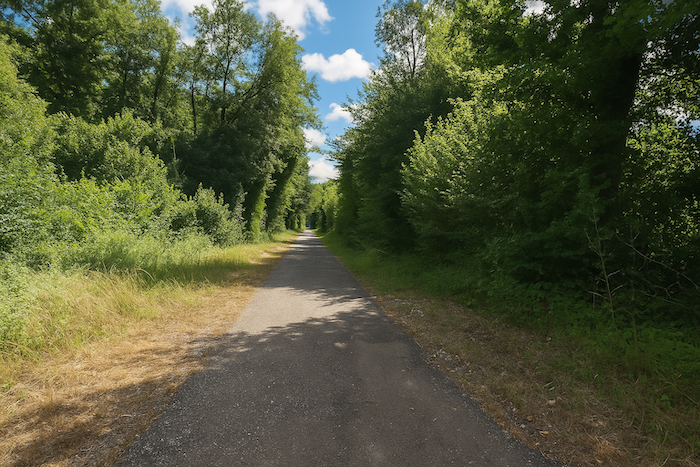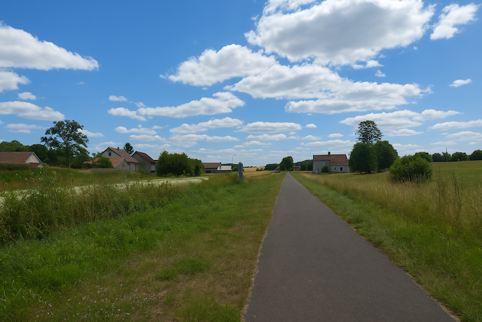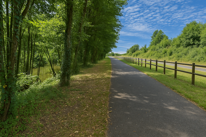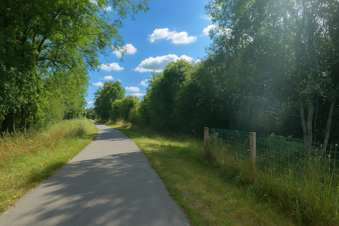 | Juste après cette halte paisible, le parcours rejoint une piste cyclable, comme un fil tendu dans le paysage pour les rêveurs à deux roues. En Franche-Comté, ces voies vertes ne sont pas seulement des routes ; elles sont des invitations au voyage lent, au contact de la vraie nature. Ici, pas de bitume anonyme ni de bruit de moteurs agressifs, mais une piste douce, dédiée à la contemplation en mouvement. |