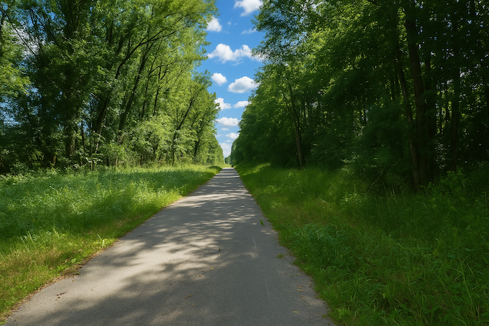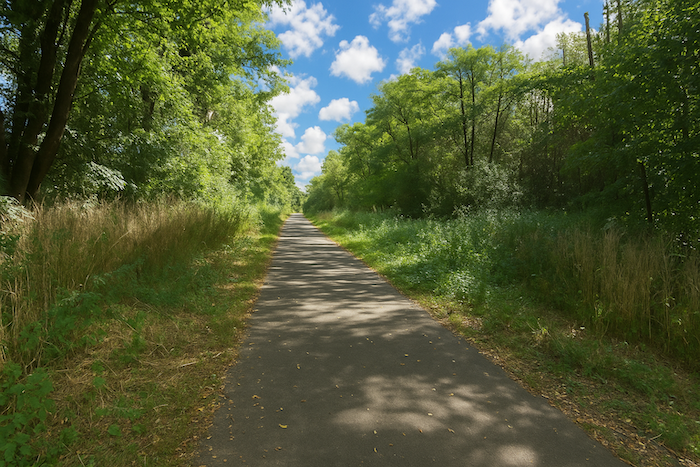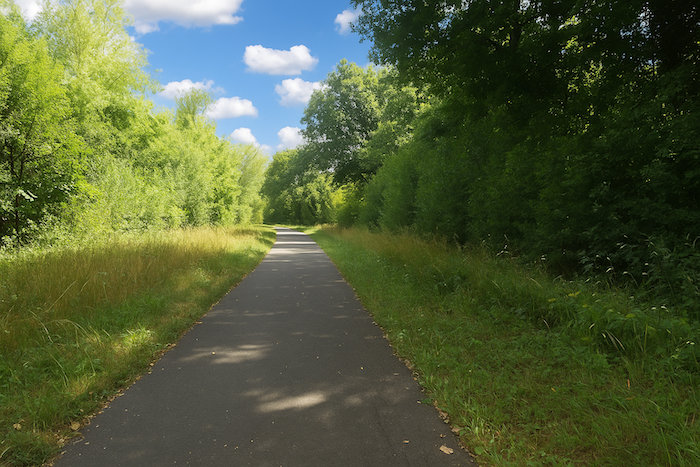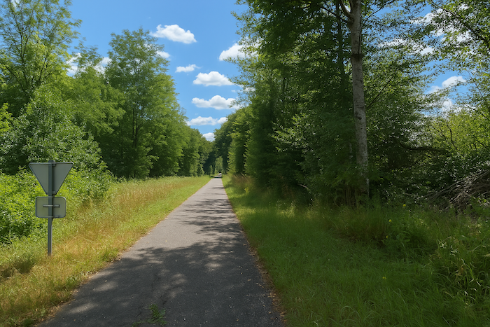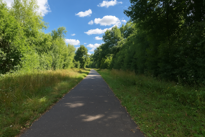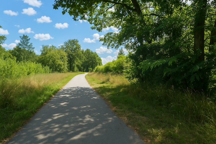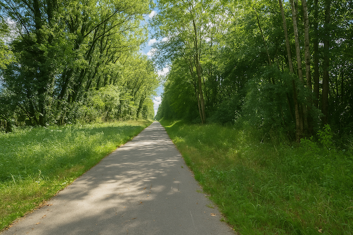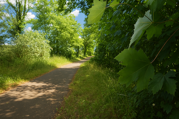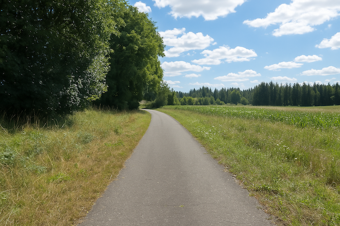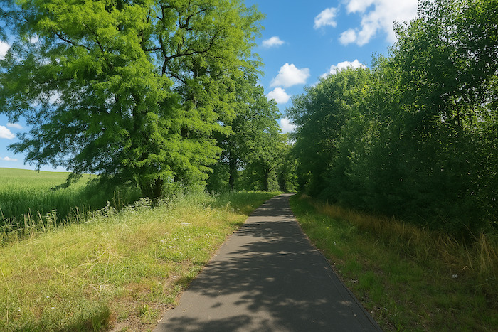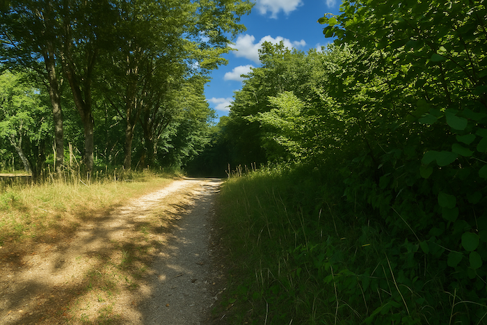 | Juste après cette halte paisible, le parcours rejoint une piste cyclable, comme un fil tendu dans le paysage pour les rêveurs à deux roues. En Franche-Comté, ces voies vertes ne sont pas seulement des routes ; elles sont des invitations au voyage lent, au contact de la vraie nature. Ici, pas de bitume anonyme ni de bruit de moteurs agressifs, mais une piste douce, dédiée à la contemplation en mouvement. |