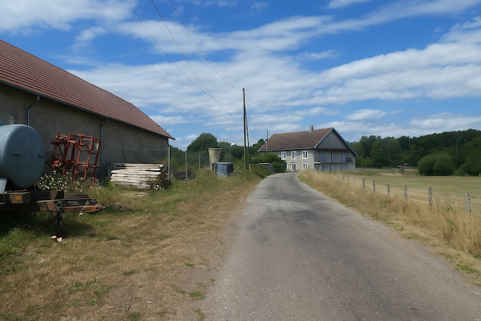 | Le chemin défile, lentement, dans une sorte de mélancolie tranquille. En Franche-Comté, nombreux sont ces passages où la nature agricole impose sa cadence, parfois austère, parfois apaisante. Il faut bien que les paysans vivent aussi, dans cette terre généreuse, entre labeur et patience, sculptant un paysage au rythme des saisons. |