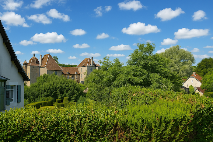 | Au cœur du village, se dressent fièrement l’église et le château, deux témoins majeurs de l’histoire locale. Le château fort, édifié au XIIe siècle et remodelé au fil des siècles, reste une forteresse mystérieuse, privée et close, gardant ses secrets derrière ses murailles séculaires. Non loin de là, l’église St Martin, érigée au XVIe siècle et reconstruite au XIXe siècle, arbore fièrement un clocher comtois, ce toit en forme de bulbe caractéristique qui ponctue le paysage de la région comme un symbole d’identité et de tradition. |