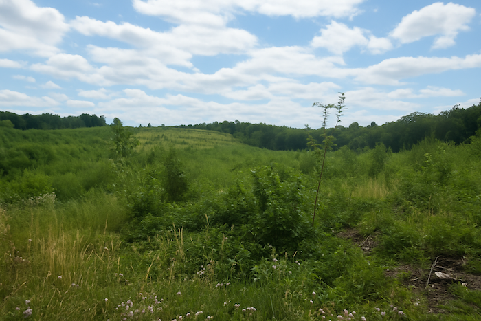 | Puis, le chemin s’élargit à nouveau, s’aventurant dans une clairière où la nature se reconstruit avec une vigueur farouche. Ce secteur en cours de reboisement s’offre comme un tableau vivant d’une nature sauvage, indomptée. On peut aisément imaginer que les ombres furtives des soldats allemands d’autrefois se glissaient sans peine sous ces frondaisons épaisses, cherchant à disparaître aux yeux du monde, complices du silence ancestral. |