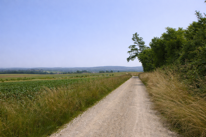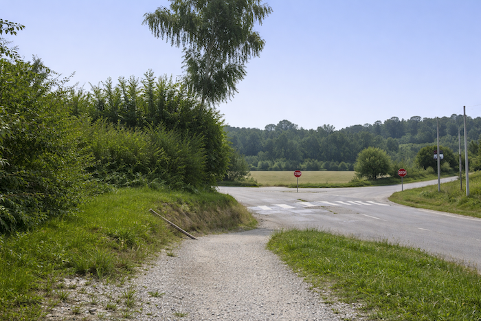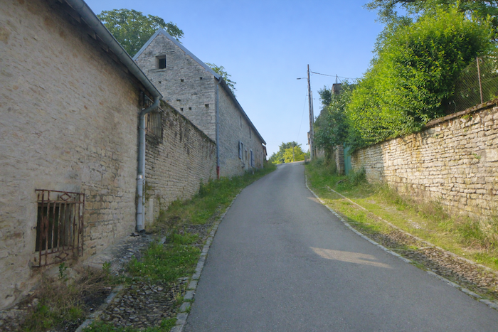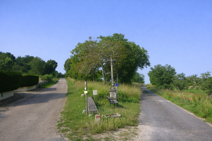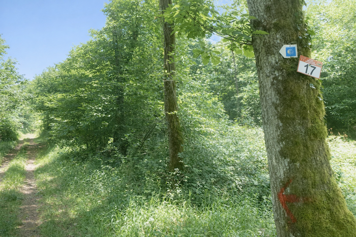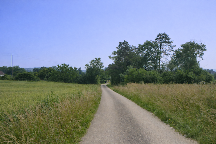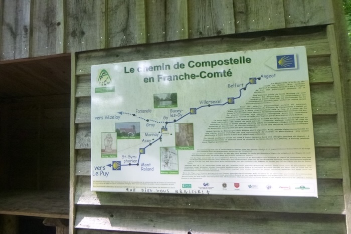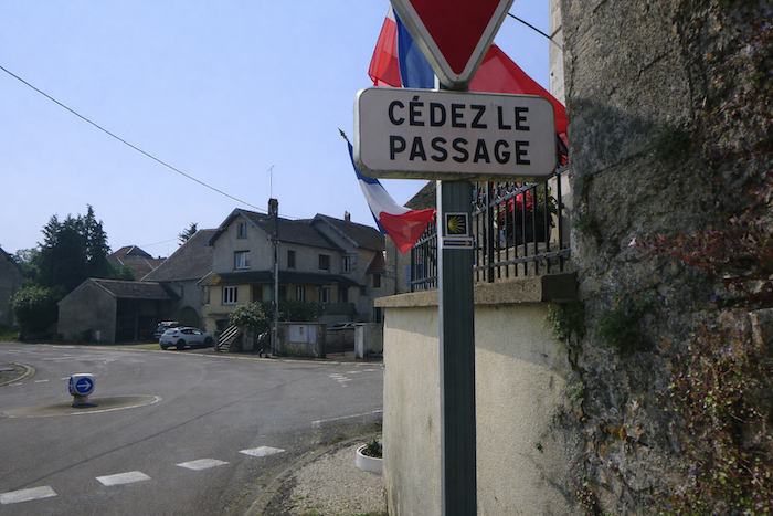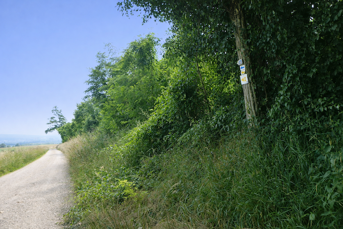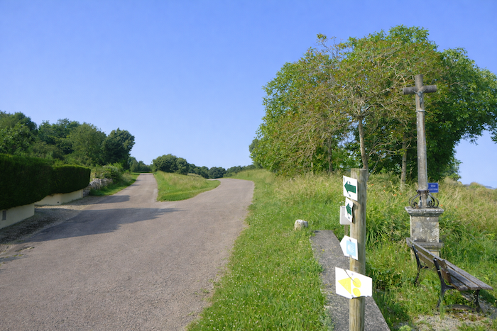 Il est indéniablement plus simple d’être guidé, de se voir mâcher le travail et de suivre un itinéraire clair. Le GPS peut être un allié, mais encore faut-il que la carte indique le bon chemin, ce qui n’est pas toujours le cas. Les cartes globales des Chemins européens, censées être cohérentes, contiennent ici une erreur, vestige probable d’un itinéraire ancien devenu obsolète. Si vous vous tournez vers le guide publié par les Amis de Compostelle pour l’Alsace, la Franche-Comté et la Bourgogne, l’information reste décevante. Le guide se limite à un laconique : “Gravir la colline jusqu’à la RD11“. On pourrait croire avoir atteint la RD11 au sommet de la colline, mais en réalité, elle se trouve plus bas, comme une surprise dérobée par la pente.
