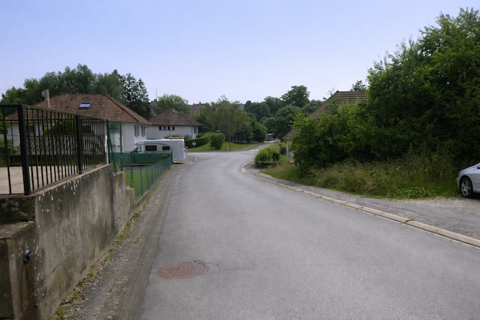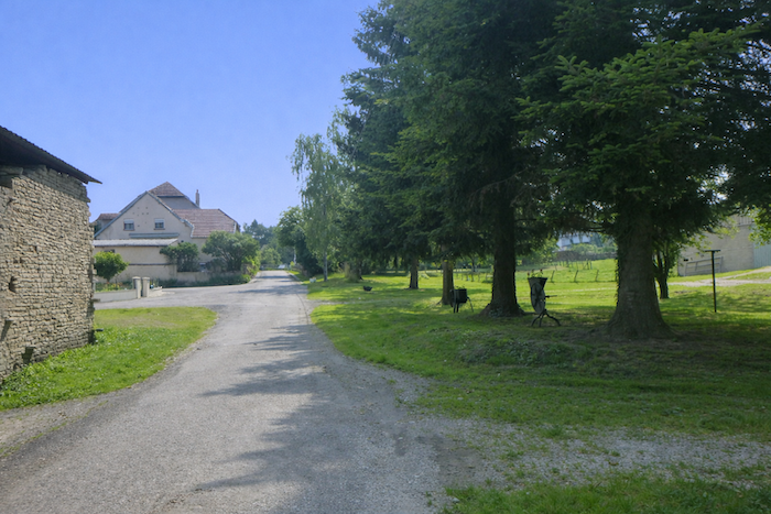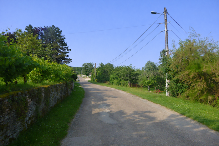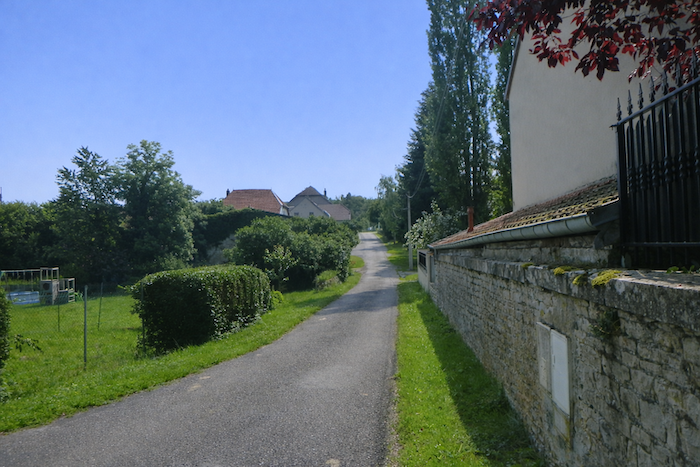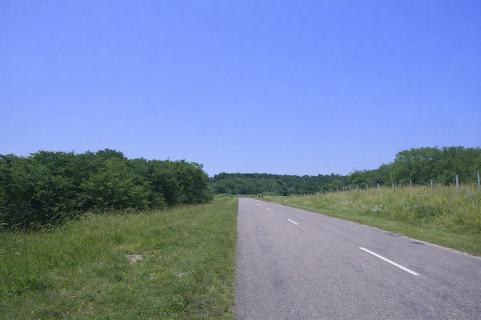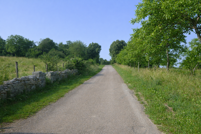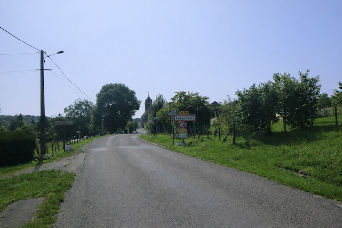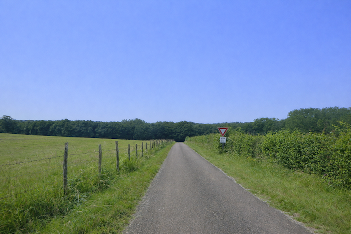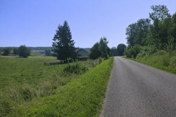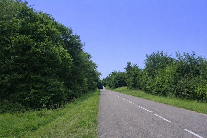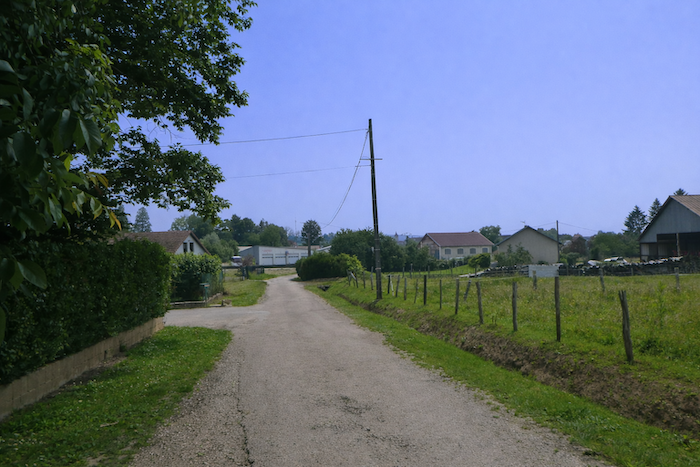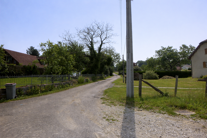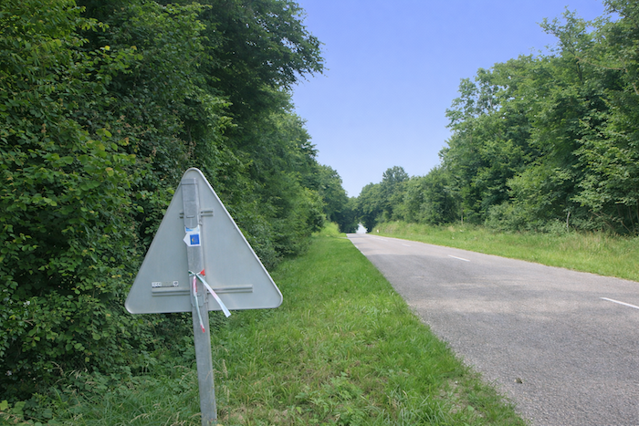 Revenons donc au sommet, là où trône le panneau du karting. Sur votre droite, une direction indique Besançon-Gray, mais aucun indice ne signale que c’est la route à suivre. Pourtant, c’est bien celle-ci que le parcours emprunte, descendant en douceur vers les prés et les buissons, telle une rivière d’asphalte caressant le paysage.