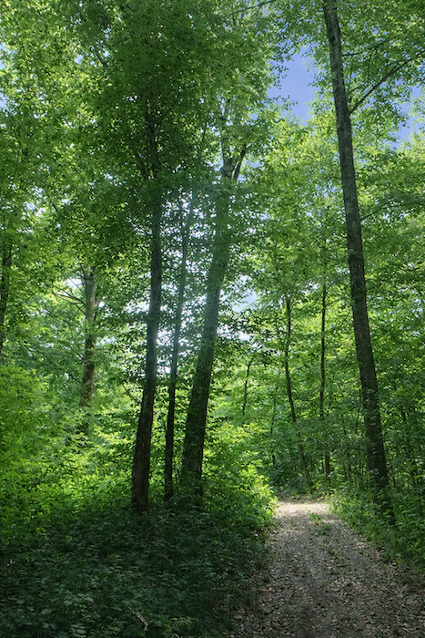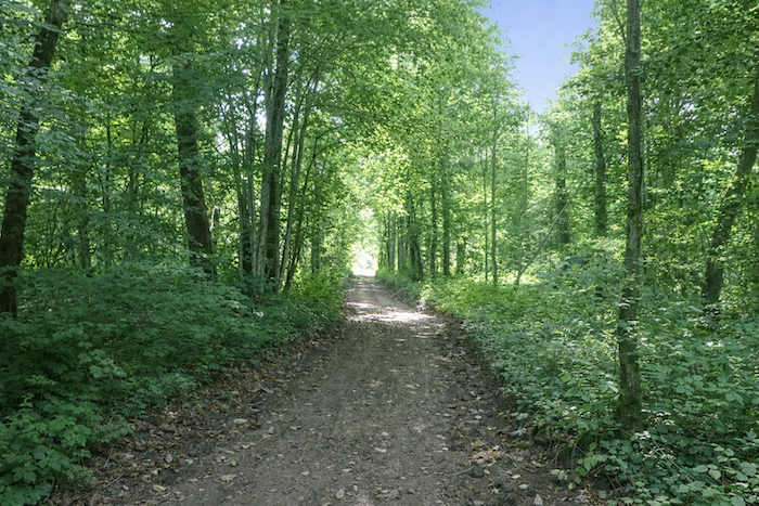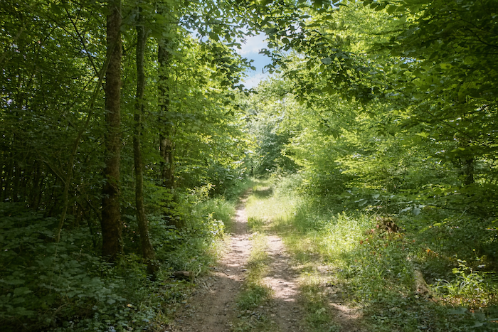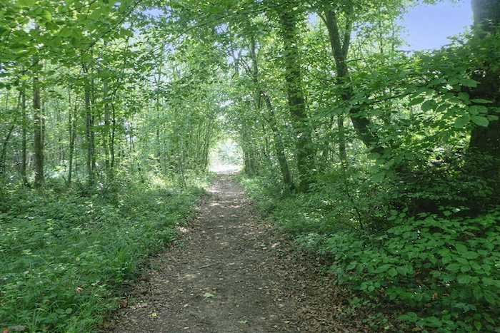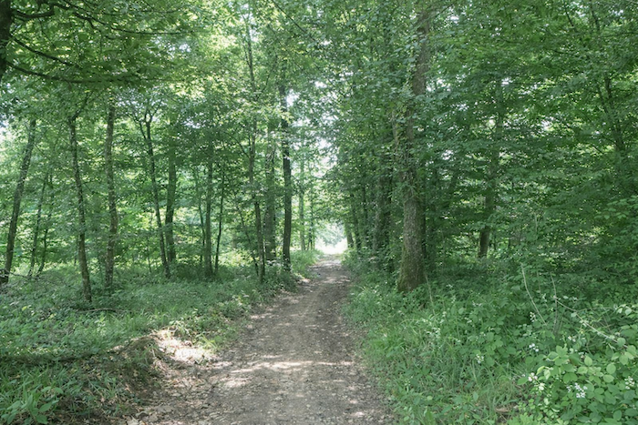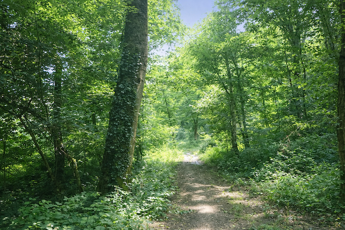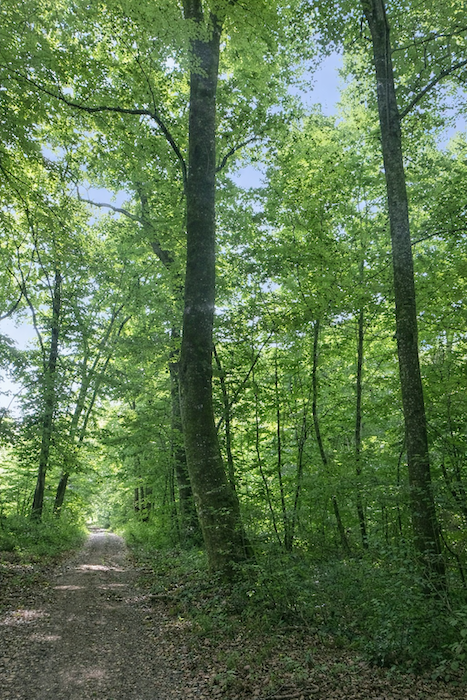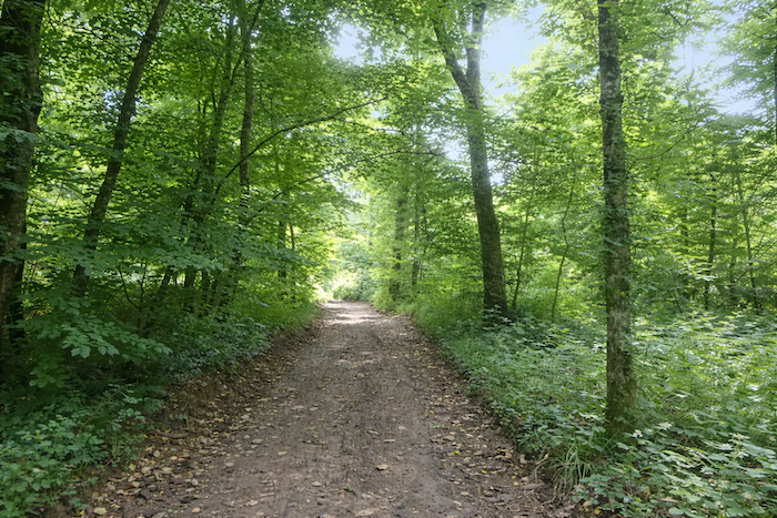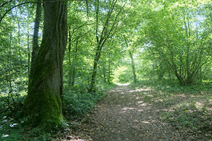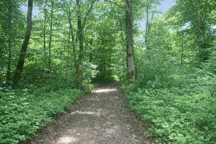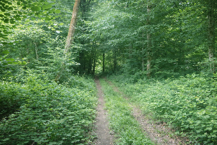 | Le chemin se fait alors compagnon de voyage, musardant à l’ombre des grands feuillus : érables généreux, frênes élancés, chênes robustes, charmes et hêtres gracieux. |