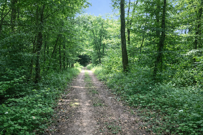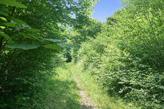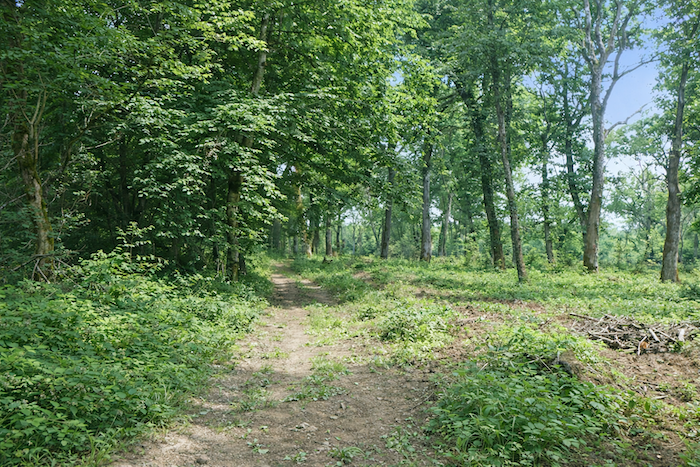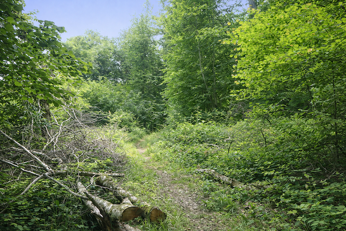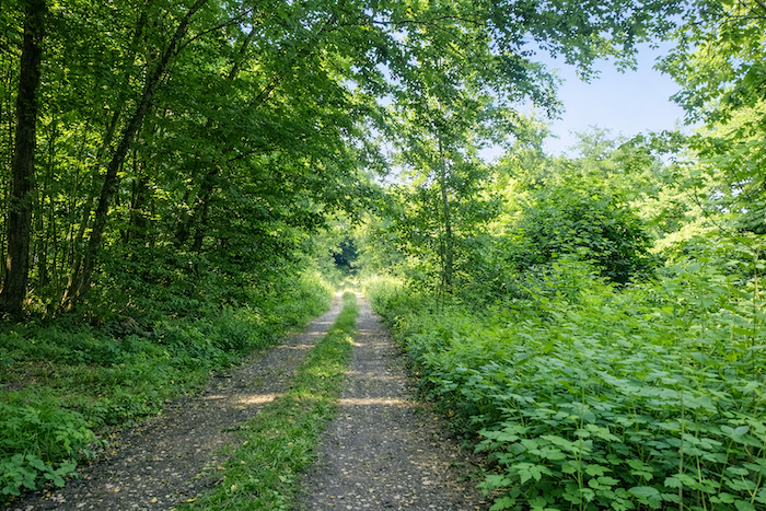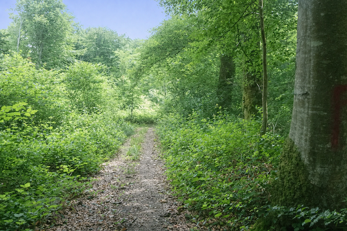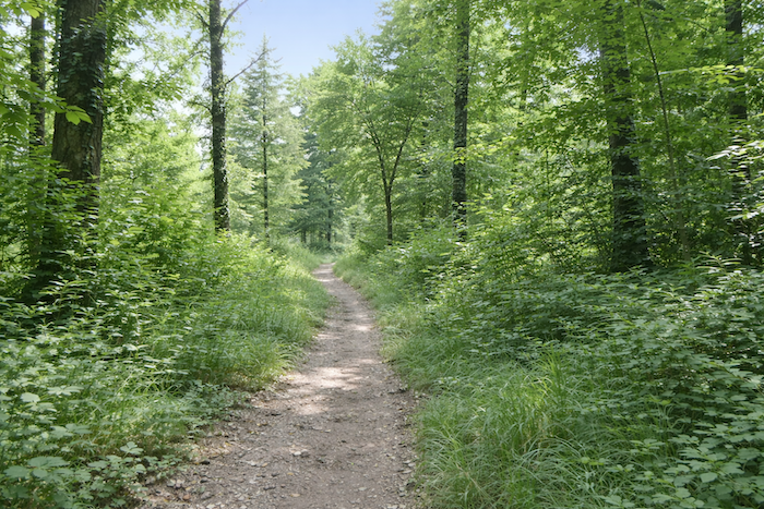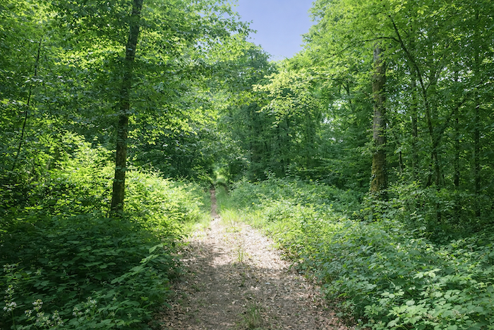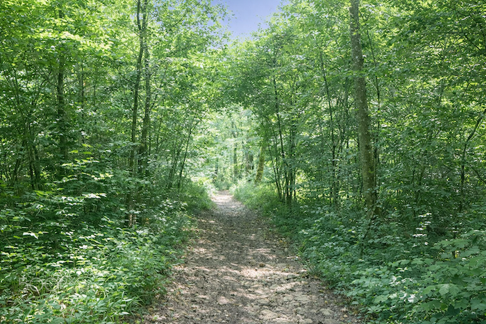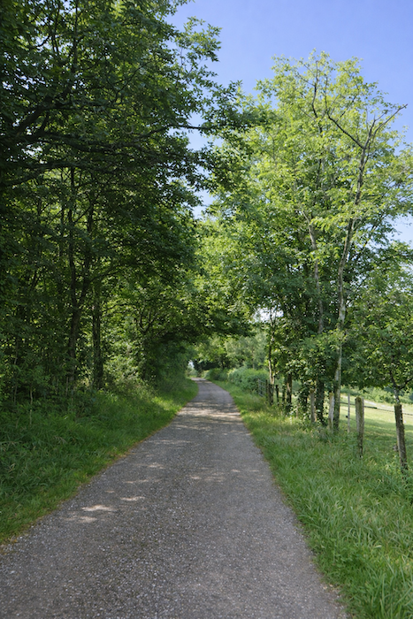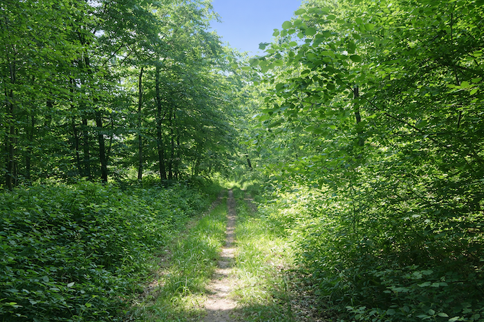| Le chemin se fait alors compagnon de voyage, musardant à l’ombre des grands feuillus : érables généreux, frênes élancés, chênes robustes, charmes et hêtres gracieux. |