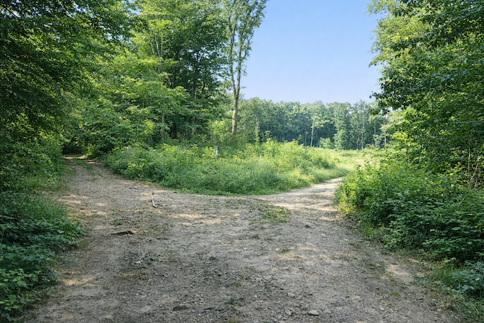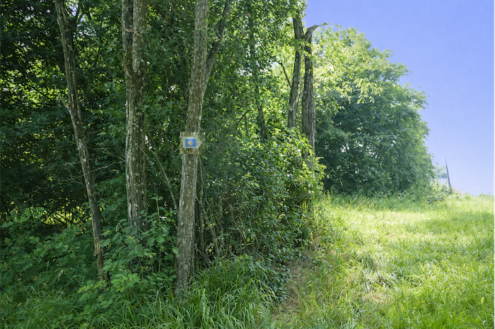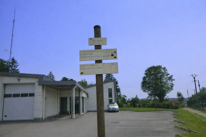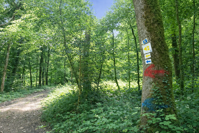 Un panneau se dresse pour expliciter enfin ce que signifient les ronds, les triangles et autres signes colorés qui jalonnaient la forêt : tous ces chemins locaux de petite randonnée convergent ici, comme autant de veines vers un cœur battant.