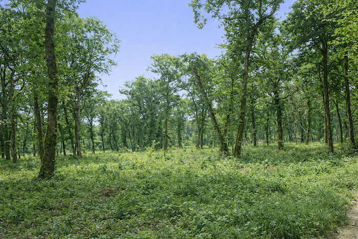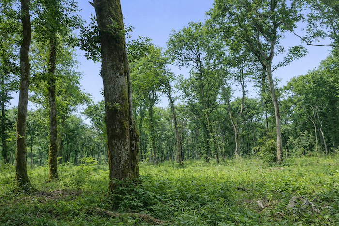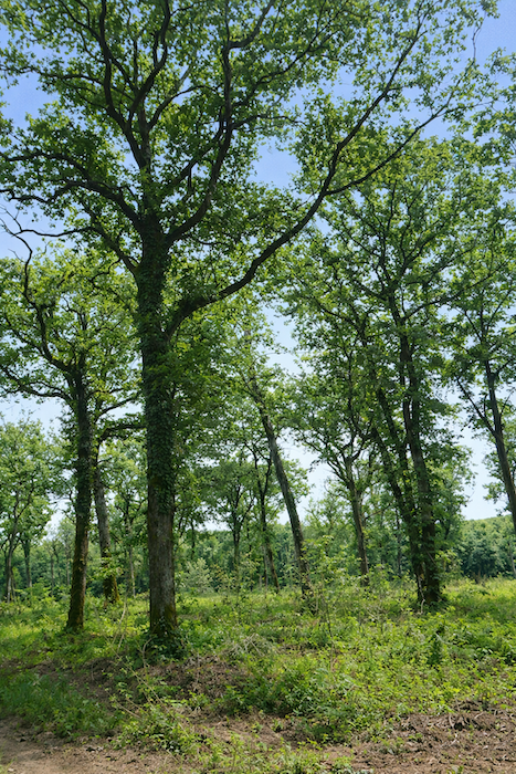 | Puis, les troncs serrés se desserrent peu à peu, et l’horizon se dégage. L’air change, la lumière gagne en intensité, comme une invitation à rejoindre la plaine. |
