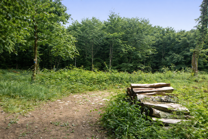| Le bois, placide et charmant, accompagne cette pente comme une main qui soutient plutôt qu’elle ne pousse. |