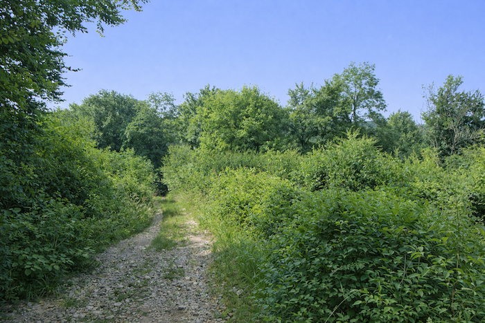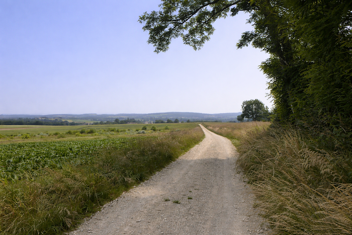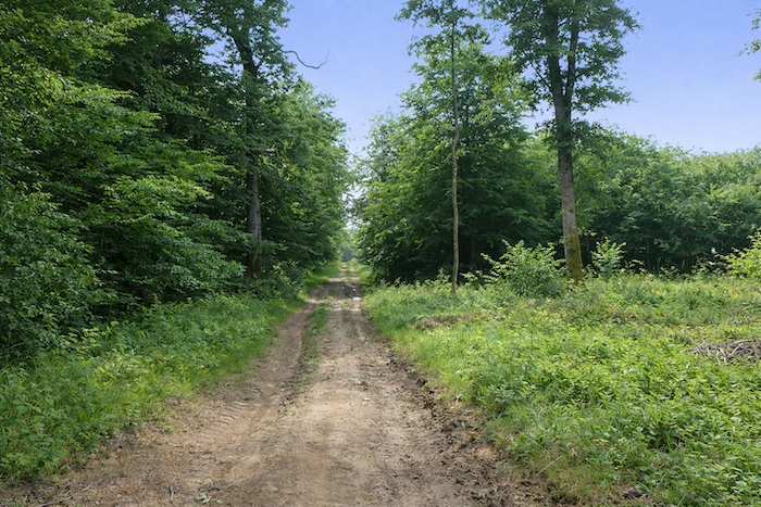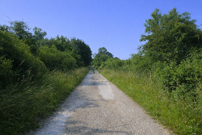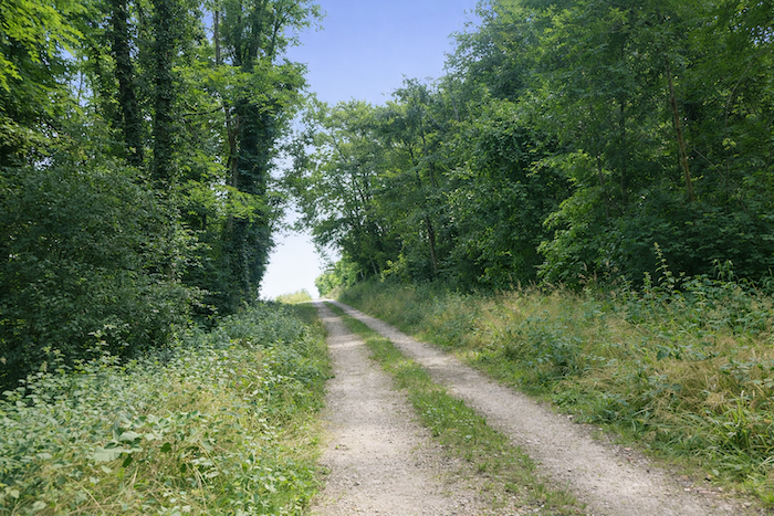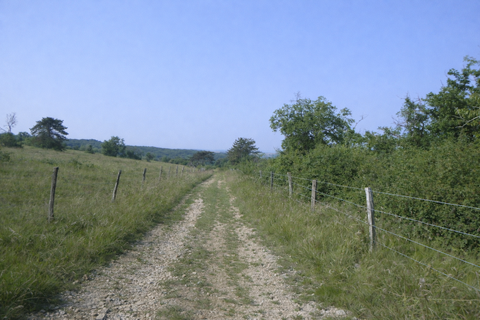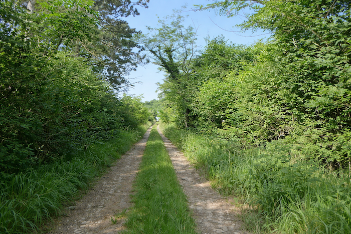 | Une large route de terre battue s’élance alors, longeant le sous-bois comme pour accompagner encore un instant ce royaume d’ombre avant de le quitter définitivement. |