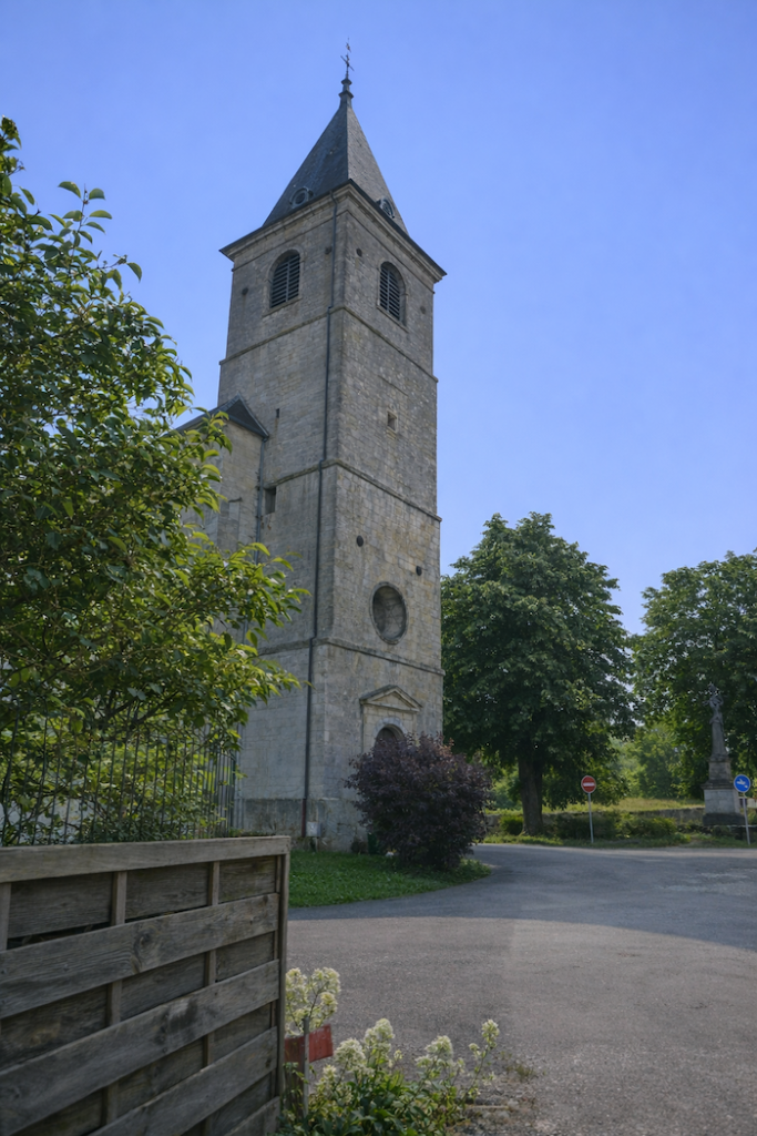 | L’église surgit enfin au sommet, posée sur une petite place à l’ombre des grands arbres. Cette couronne végétale qui la protège forme un écrin de silence et de lumière. Le marcheur, haletant de la montée, y trouve un apaisement soudain. |