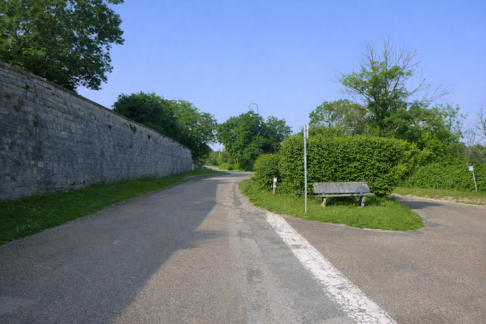 | Depuis le cimetière, la route reprend son élan et s’élève, mais d’une pente raisonnable, aux alentours de 10%. Ce n’est pas une épreuve insurmontable, mais un appel à l’endurance tranquille, un rythme qui force le pas à se caler sur le souffle, comme une respiration accordée au paysage. |