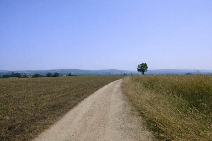 | La route arrive alors au sommet de la colline. Vous marchez désormais sur les Monts de Gy, au cœur d’une nature plus sauvage. Ici, les prés s’ouvrent et se referment, les haies dessinent des frontières anciennes, et le silence s’impose. Le marcheur retrouve une liberté primitive, celle des chemins qui s’éloignent des bourgs et se perdent dans l’infini du paysage. |