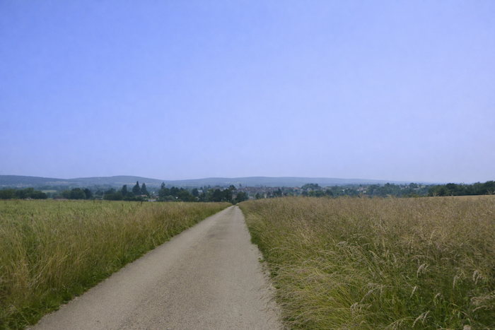| La route longe d’abord les prés, vastes tapis verts où paissent les herbes folles. Le spectacle de la campagne s’étend devant vous, calme et rassurant, comme une peinture impressionniste animée par la brise. |