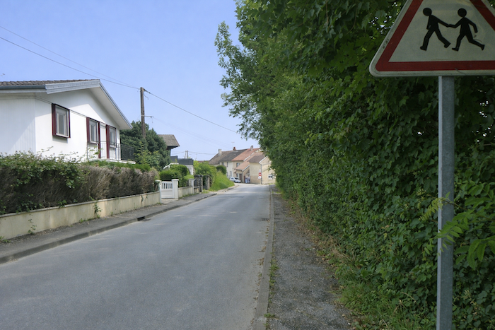 | Le parcours s’en va donc sur la longue rue qui traverse le bourg, une artère sans éclat mais empreinte de vérité. Les maisons, sobres et sans décor, s’alignent comme des témoins modestes du quotidien de ceux qui les habitent. Ici point de faste, point de pierres sculptées, mais une simplicité digne, presque touchante. Ce ruban de façades ternies par les saisons raconte la persistance de vies discrètes, comme une toile ancienne dont les couleurs se seraient effacées. |